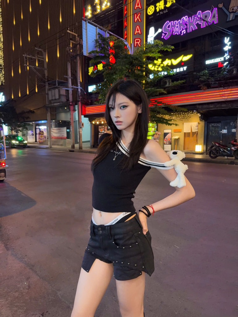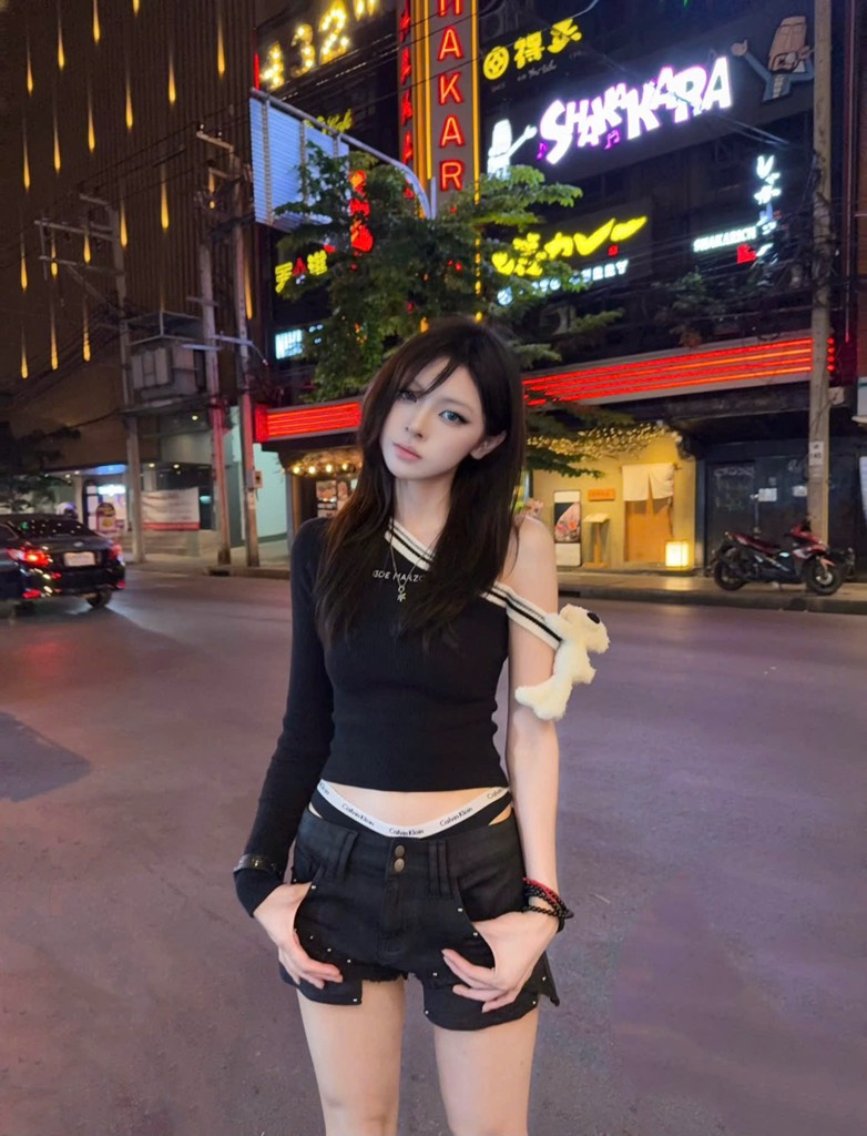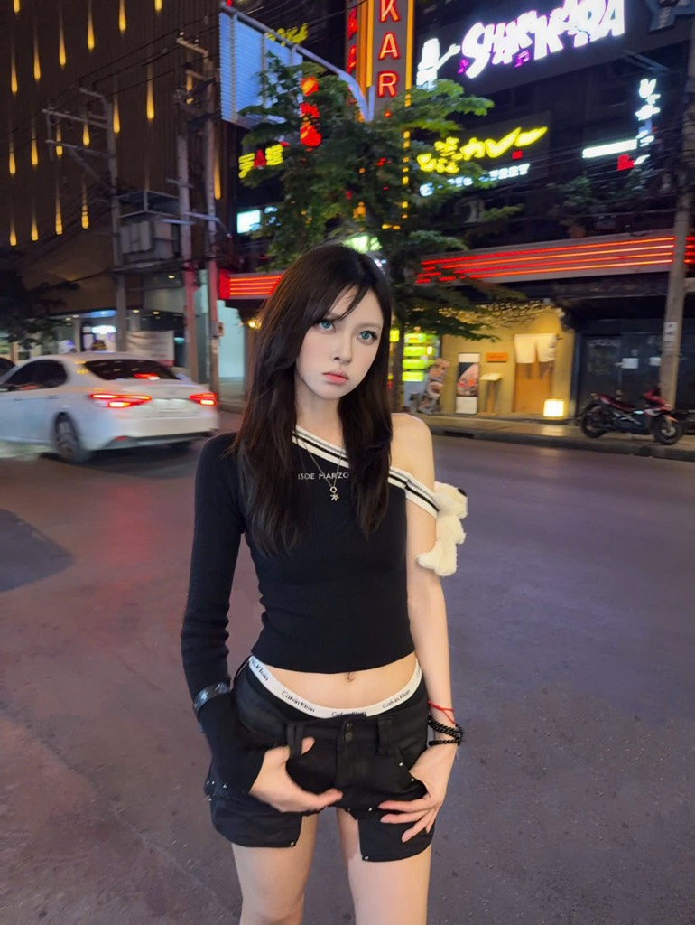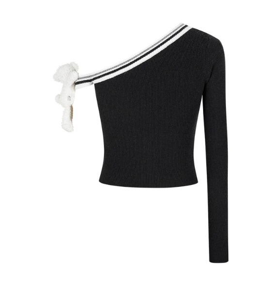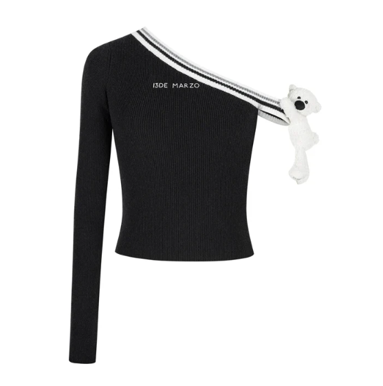 13De Marzo Asymmetrical Shoulder Knit Long Sleeve Black