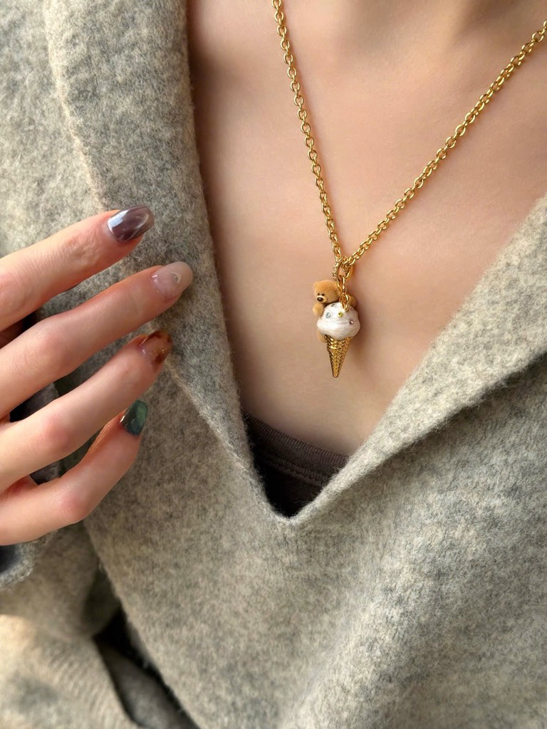 13De Marzo Bear Ice-cream Necklace Golden