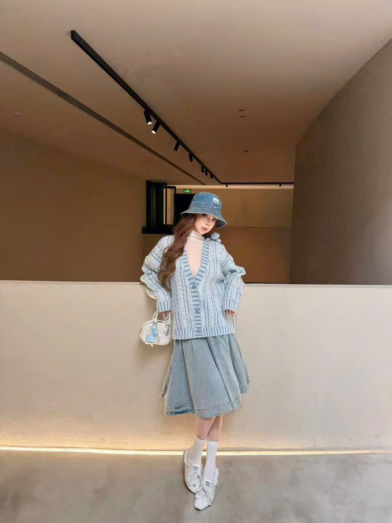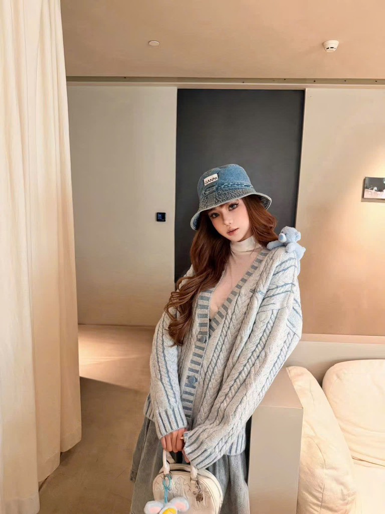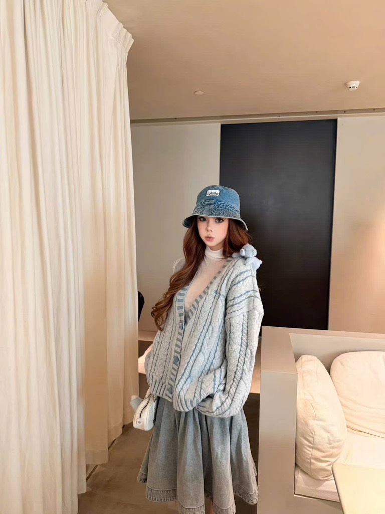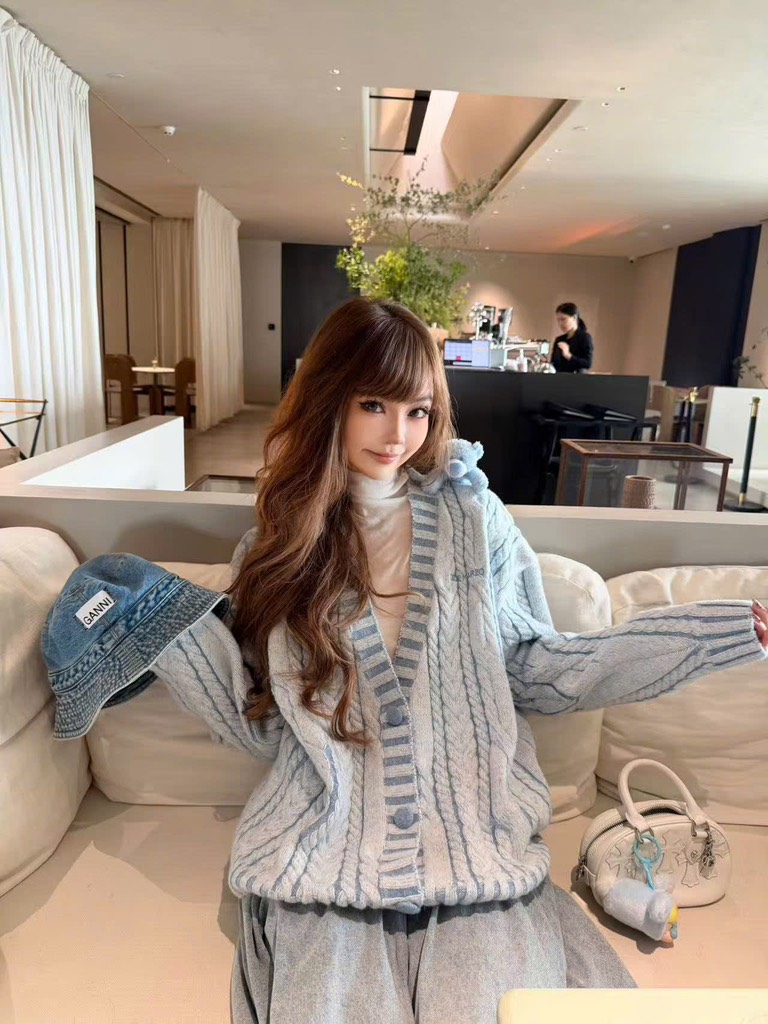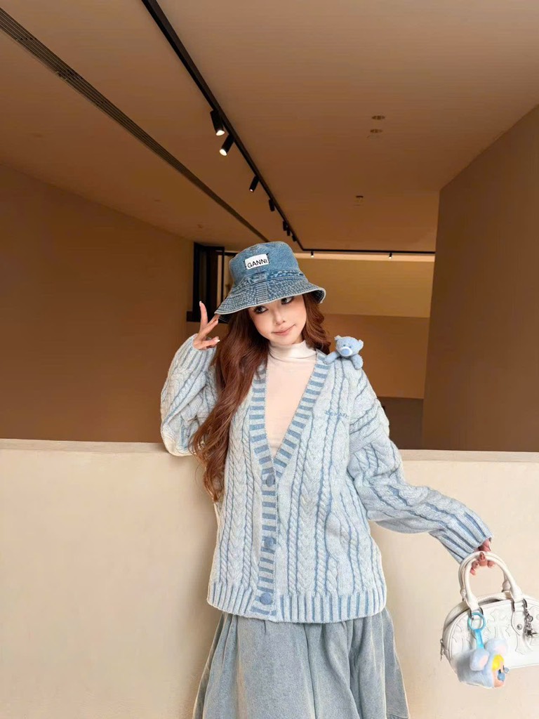 13De Marzo Bear Yarn Weave Cardigan Blue