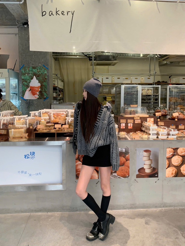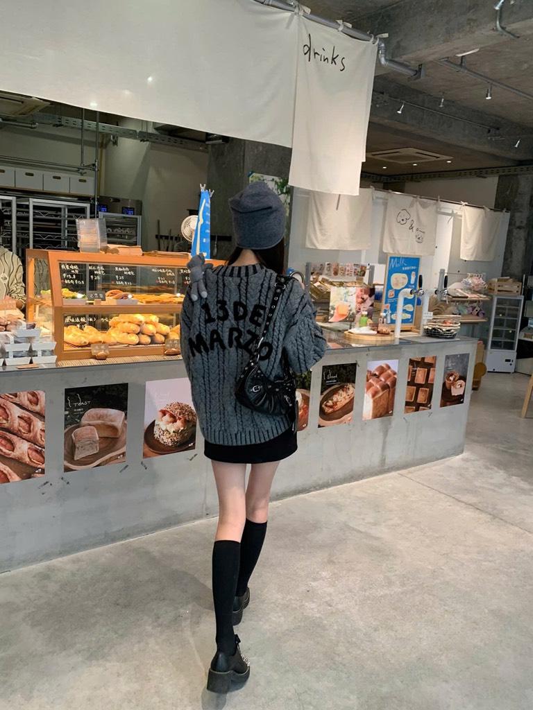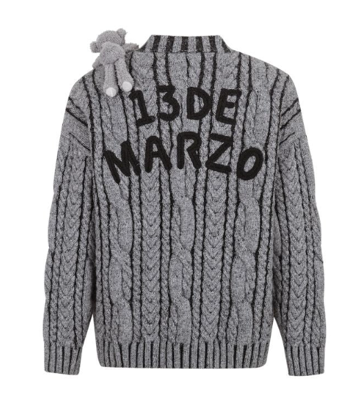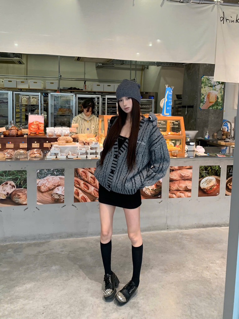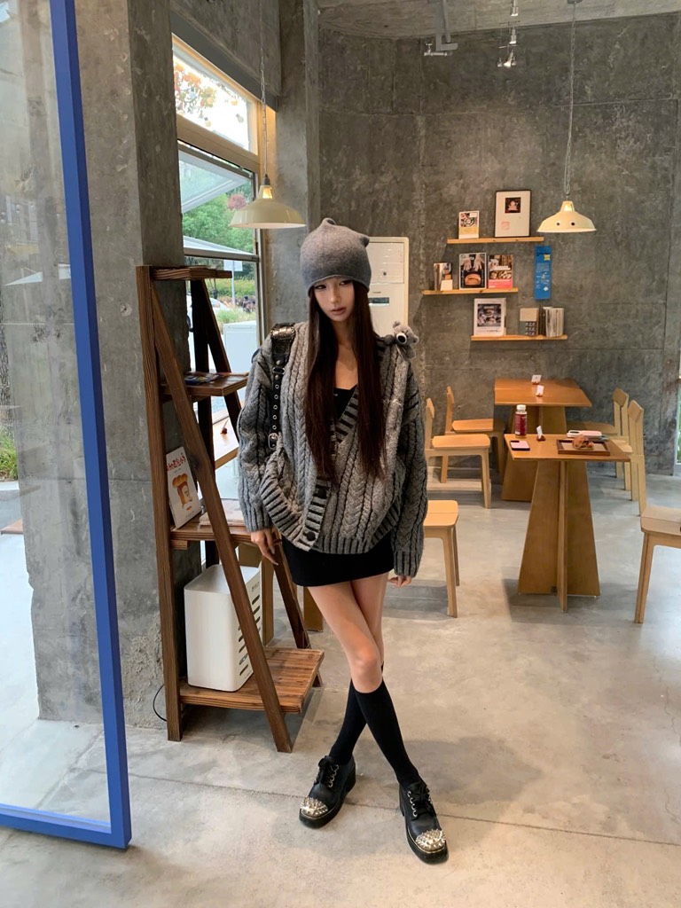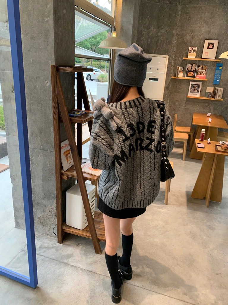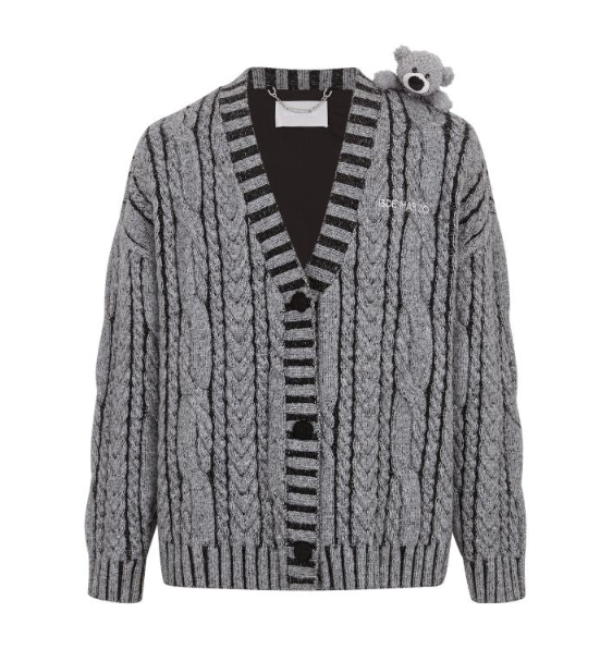 13De Marzo Bear Yarn Weave Cardigan Dark Grey