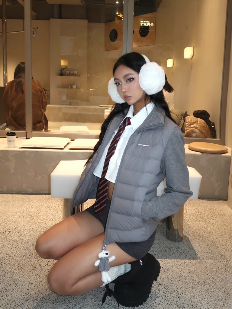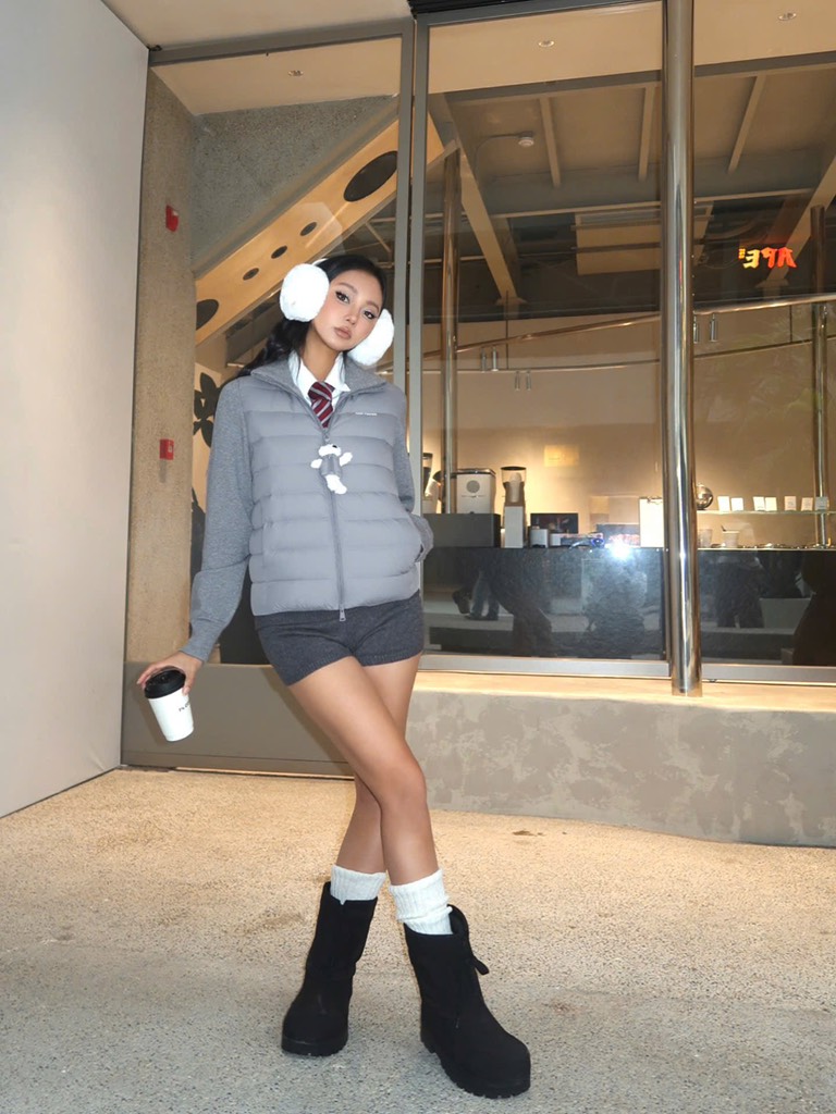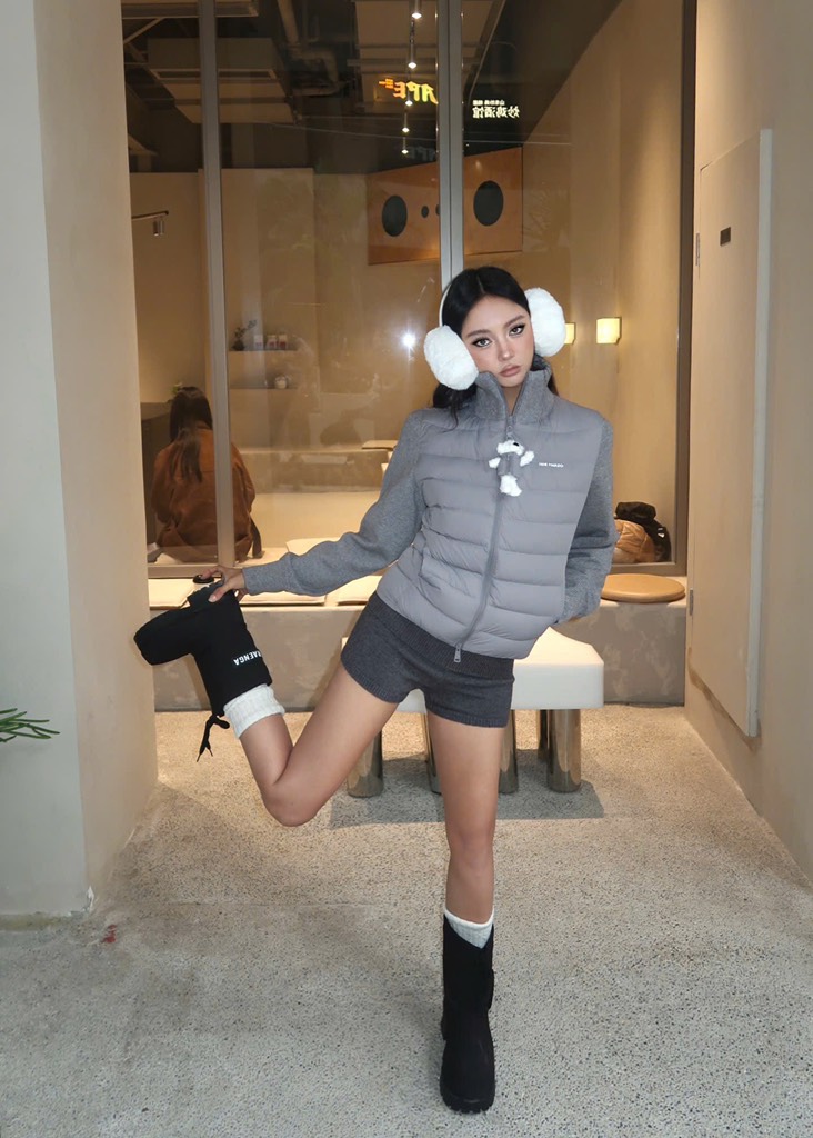 13De Marzo Bear Zipper Down Jacket Grey