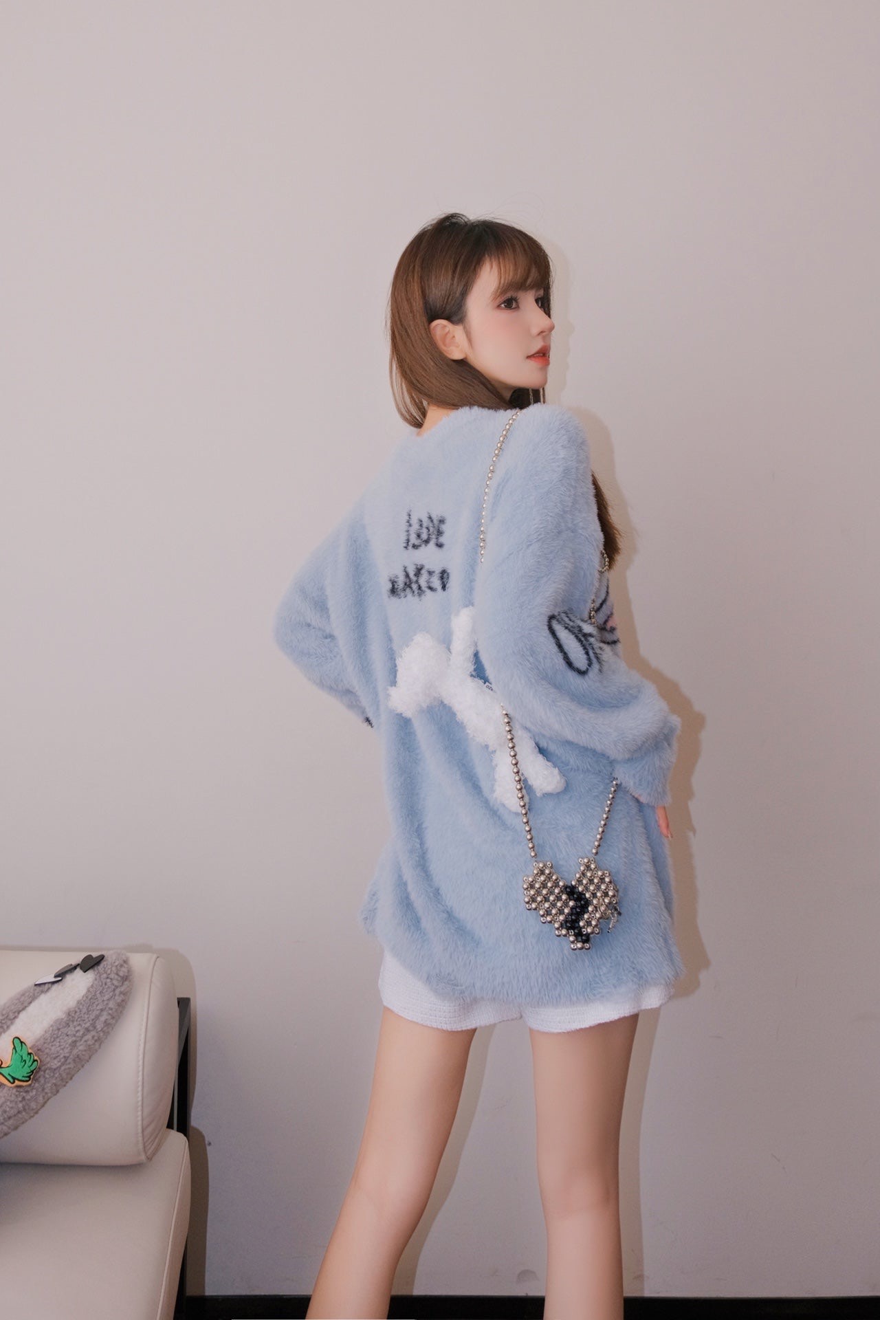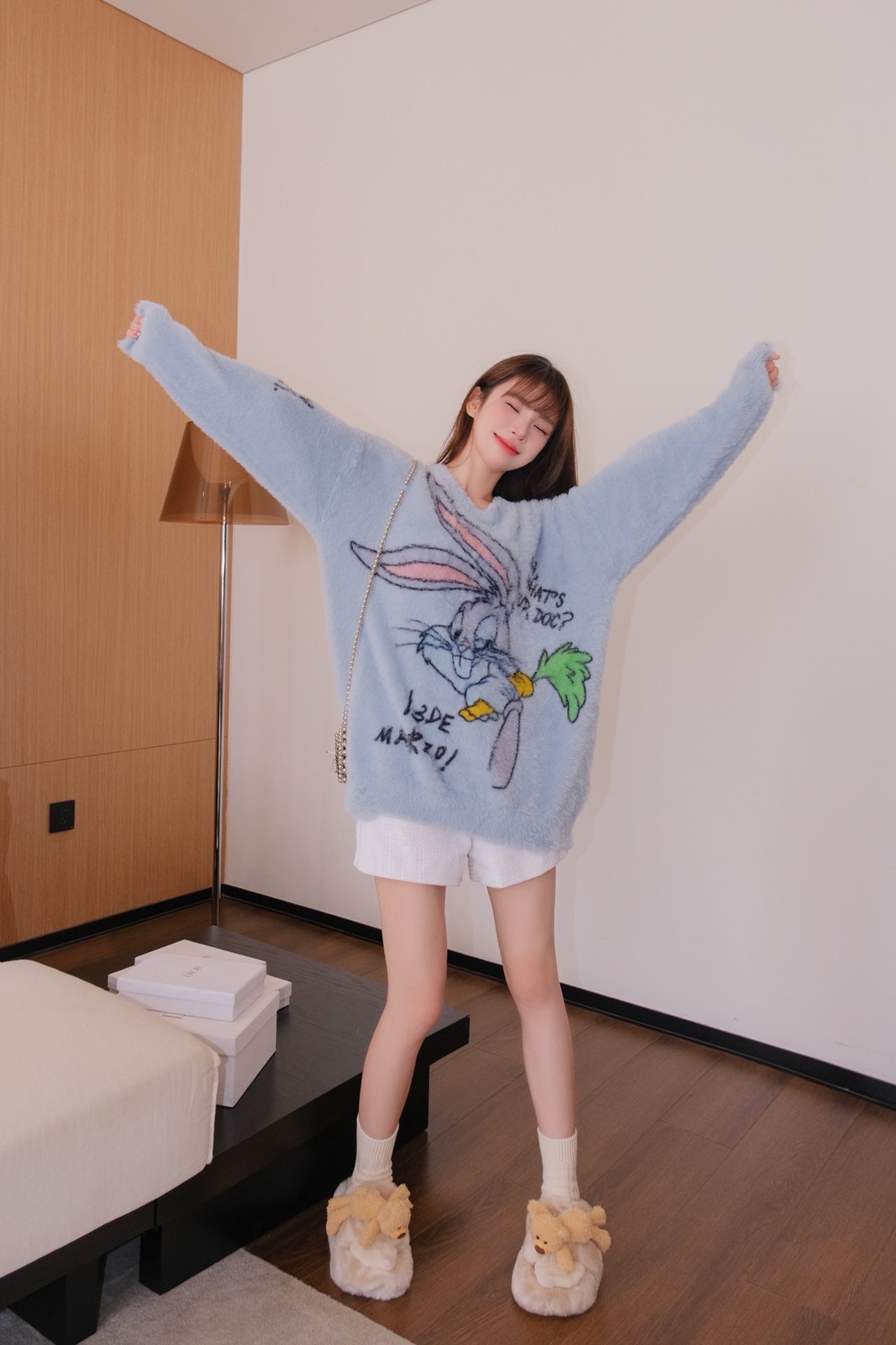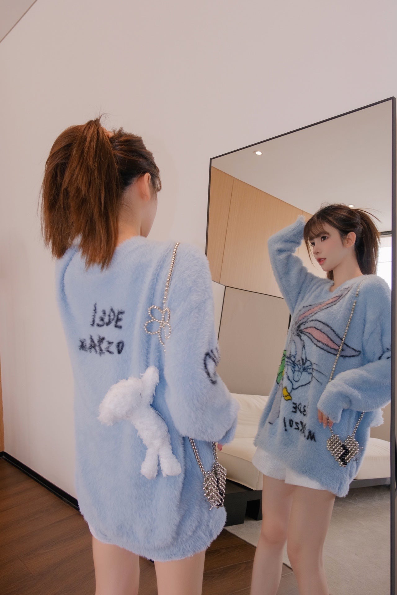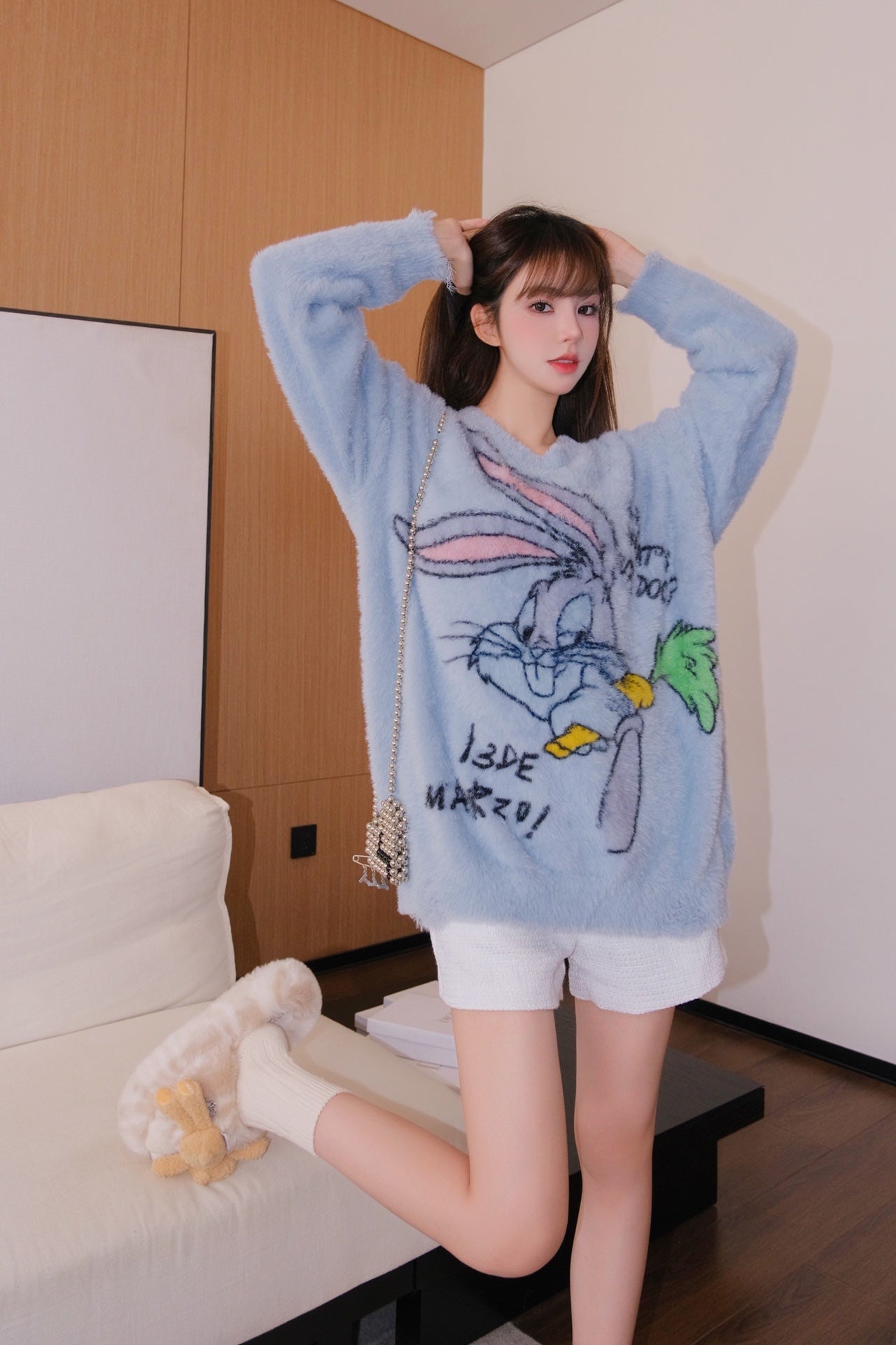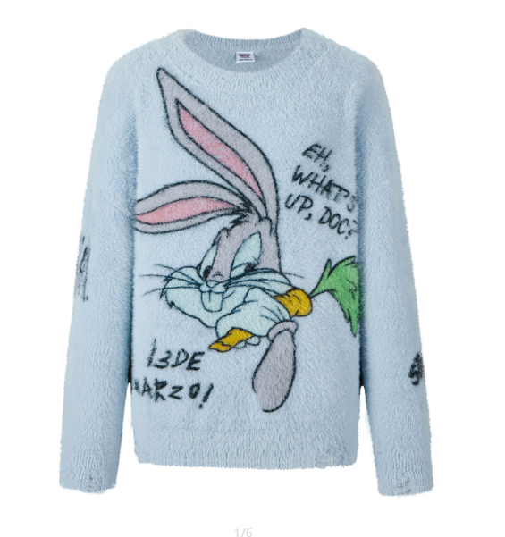 13De Marzo x LOONEY TUNES Bugs Bunny Artificial Fur Sweater Placid Blue