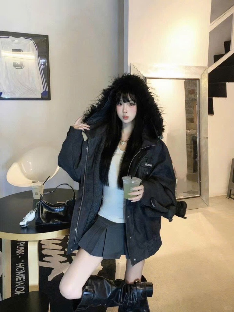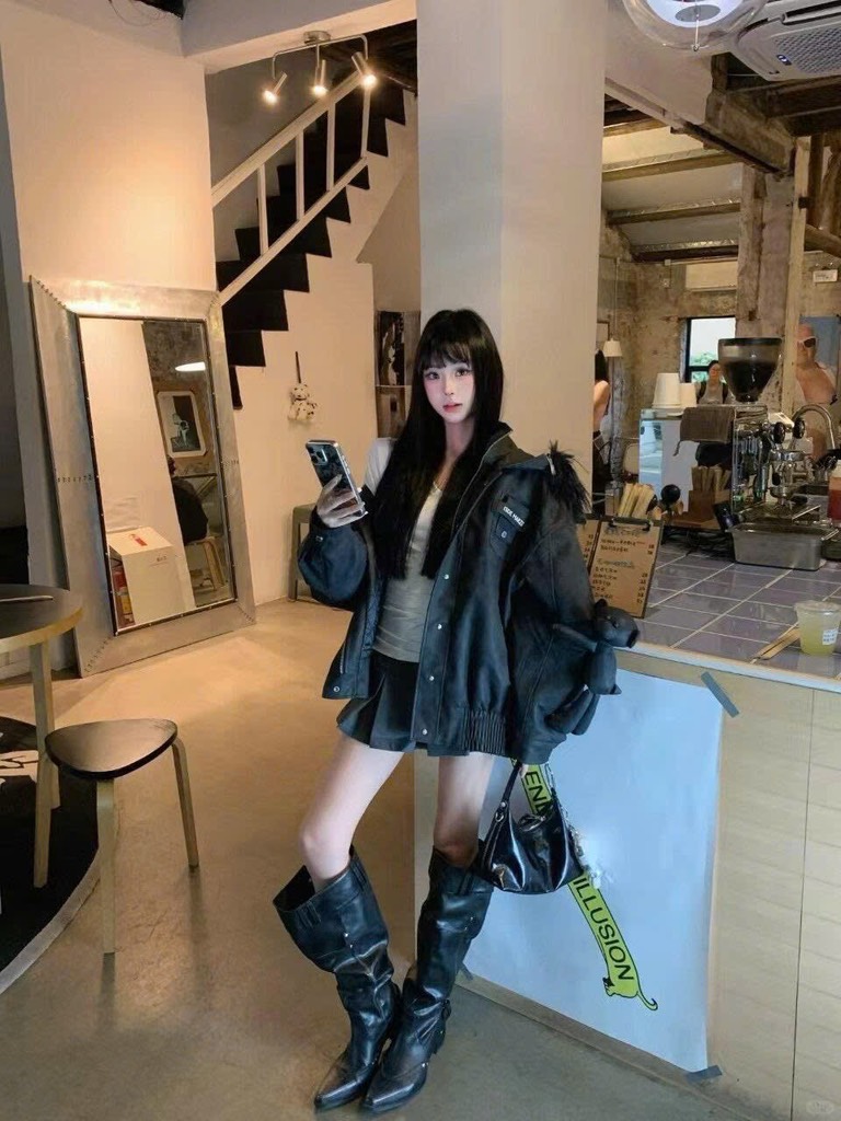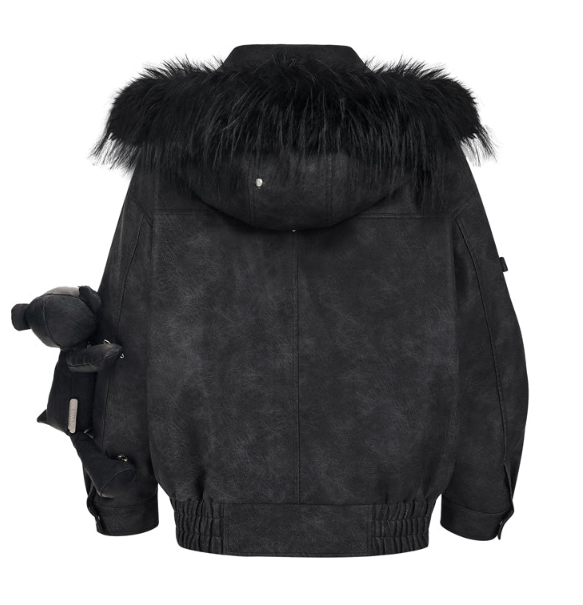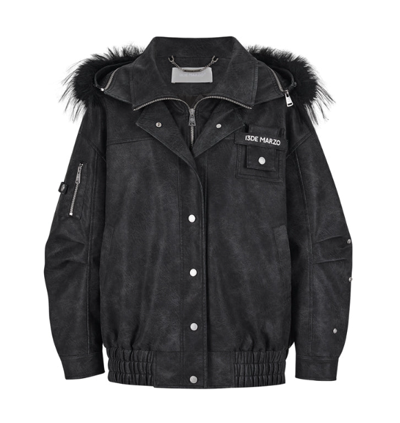 13De Marzo Doozoo Detachable Fur Collar Leather Jacket Black