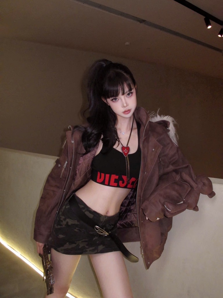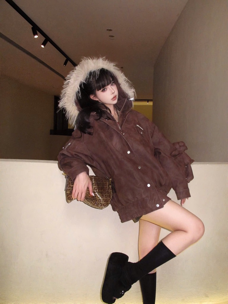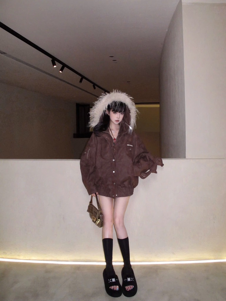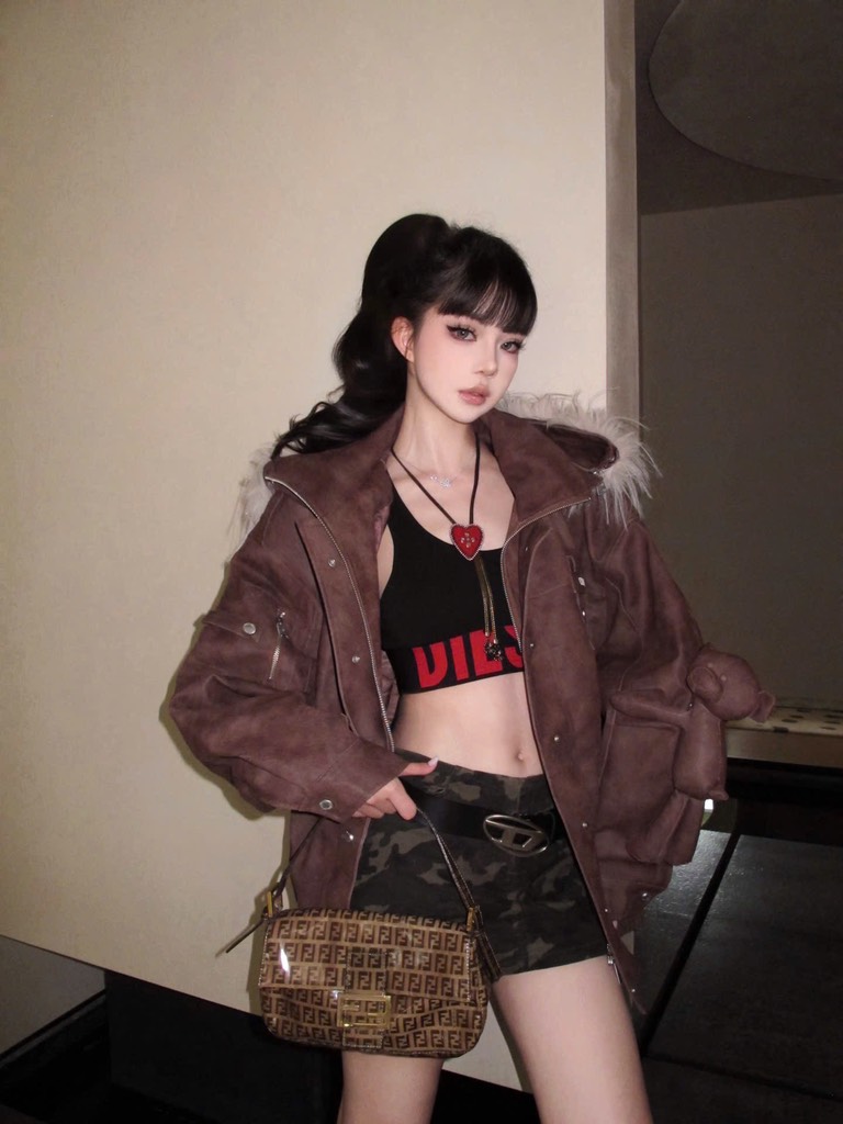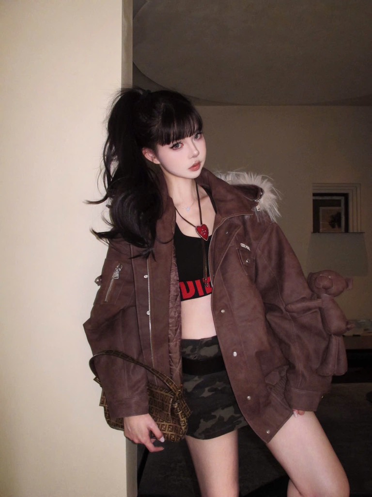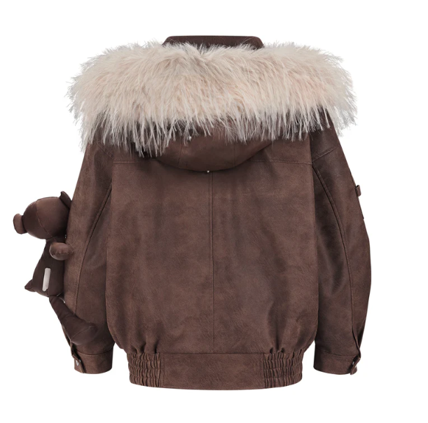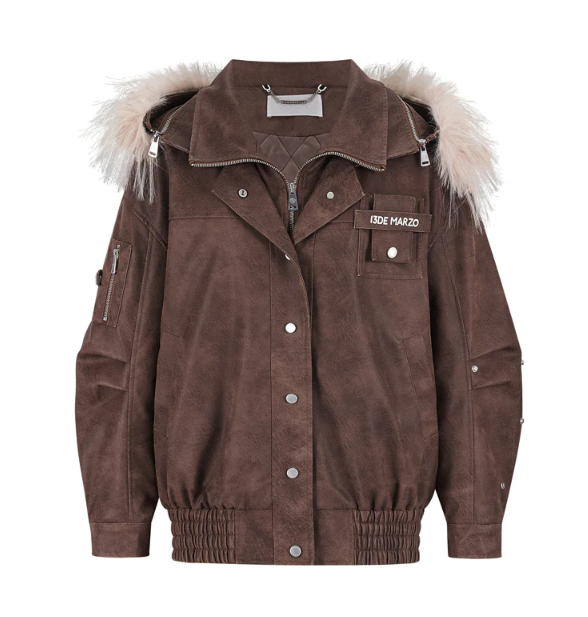 13De Marzo Doozoo Detachable Fur Collar Leather Jacket Khaki