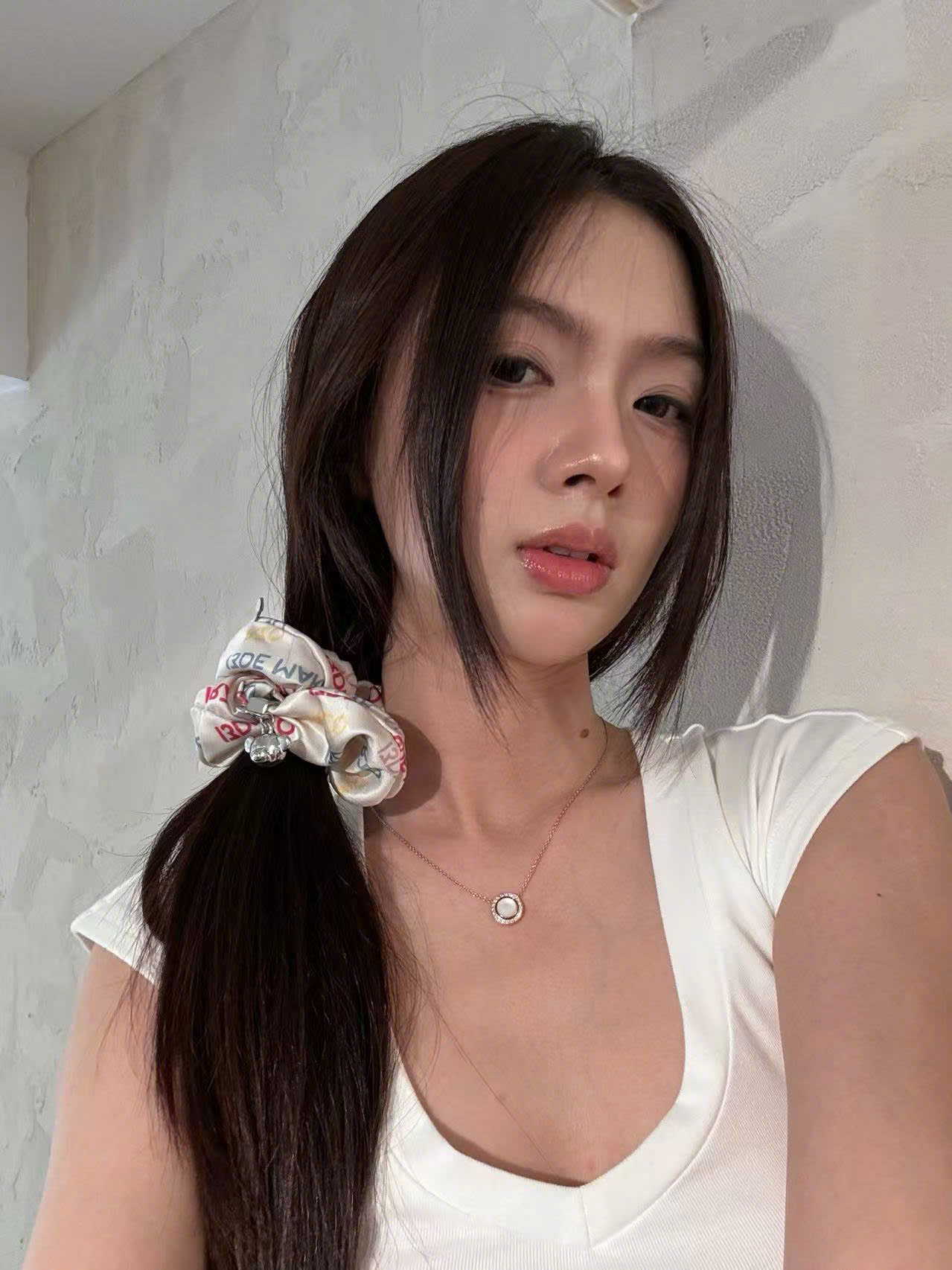 13De Marzo Doozoo Pendant Logo Hair Tie Beige