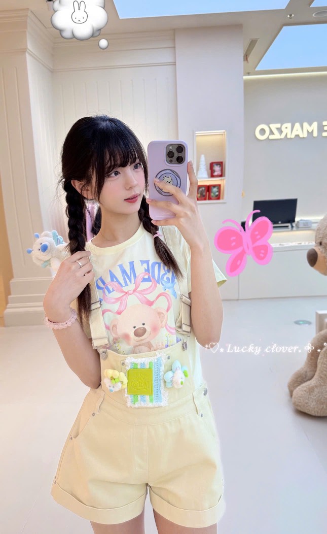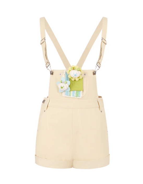 13De Marzo Floral Doll Denim Overalls Khaki