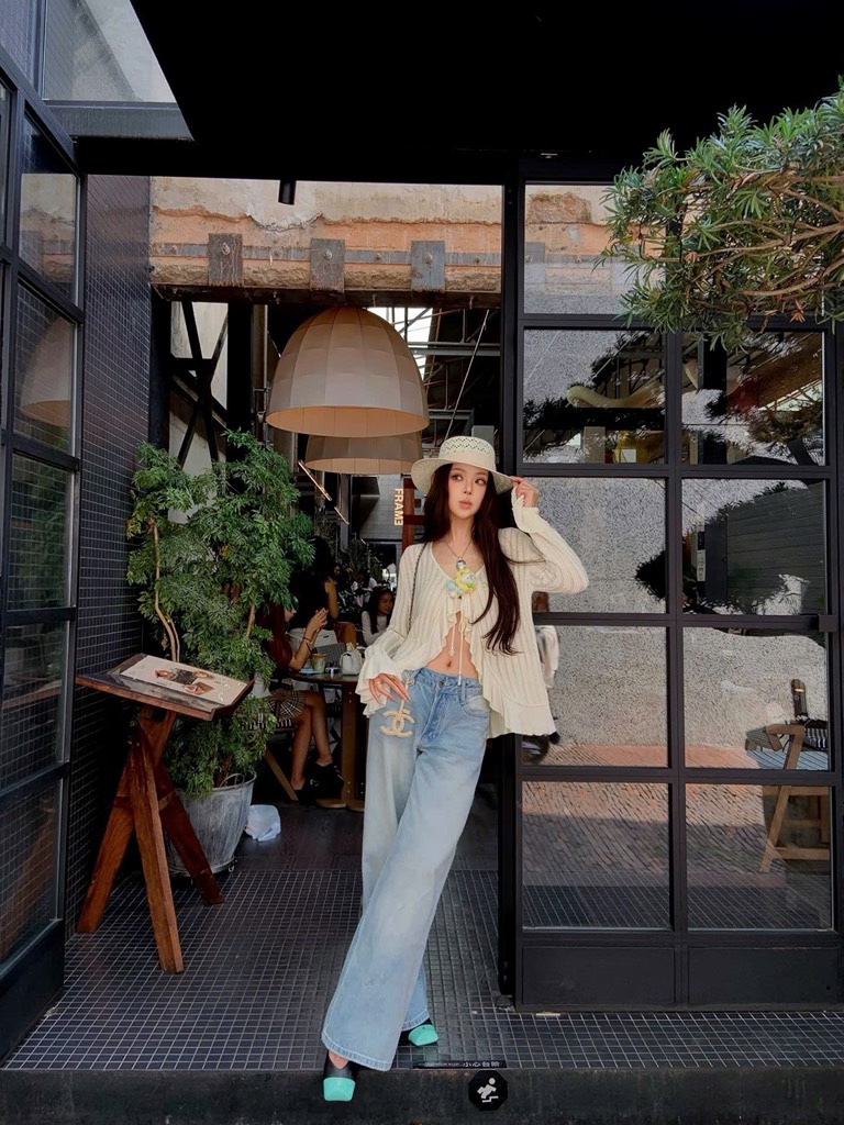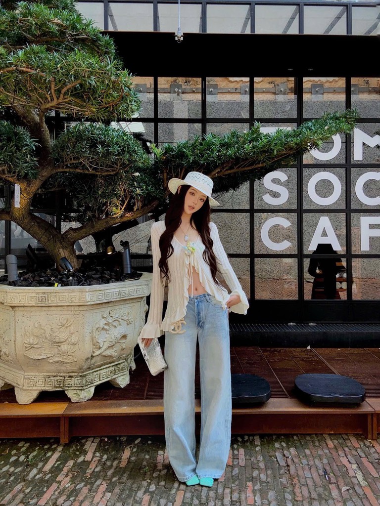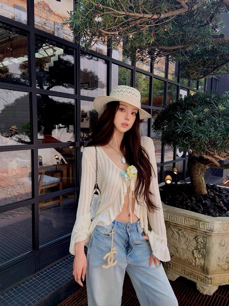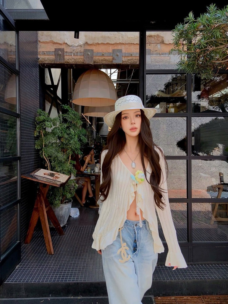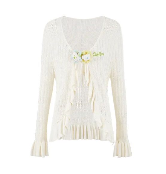 13De Marzo Floral Lines Hollow Cardigan Beige