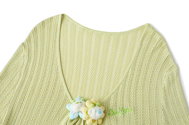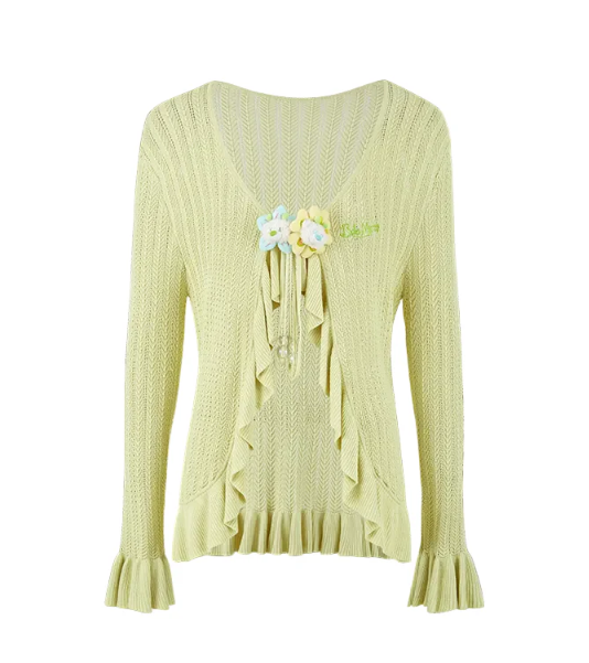 13De Marzo Floral Lines Hollow Cardigan Green