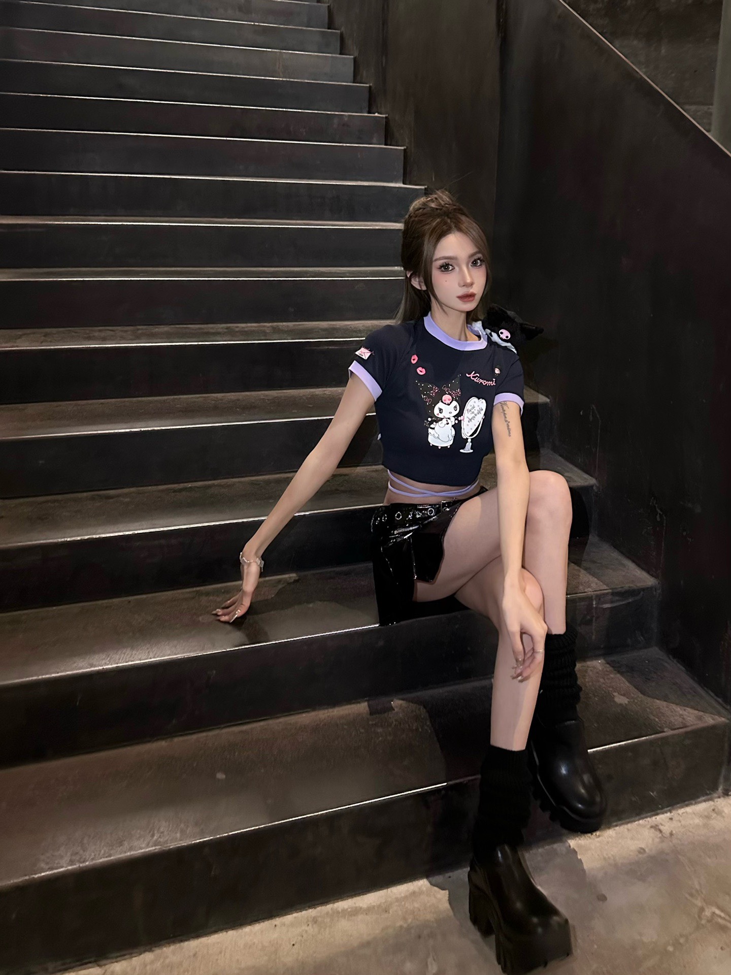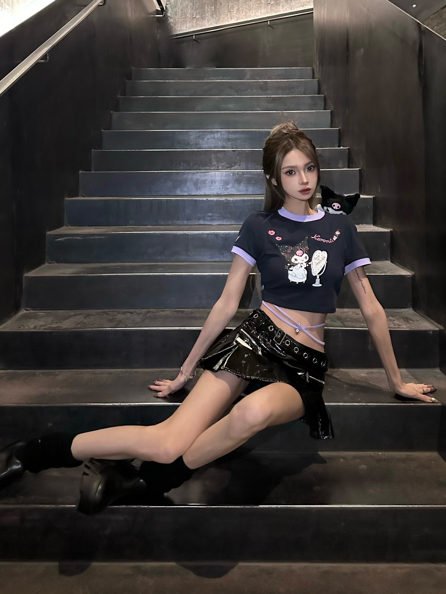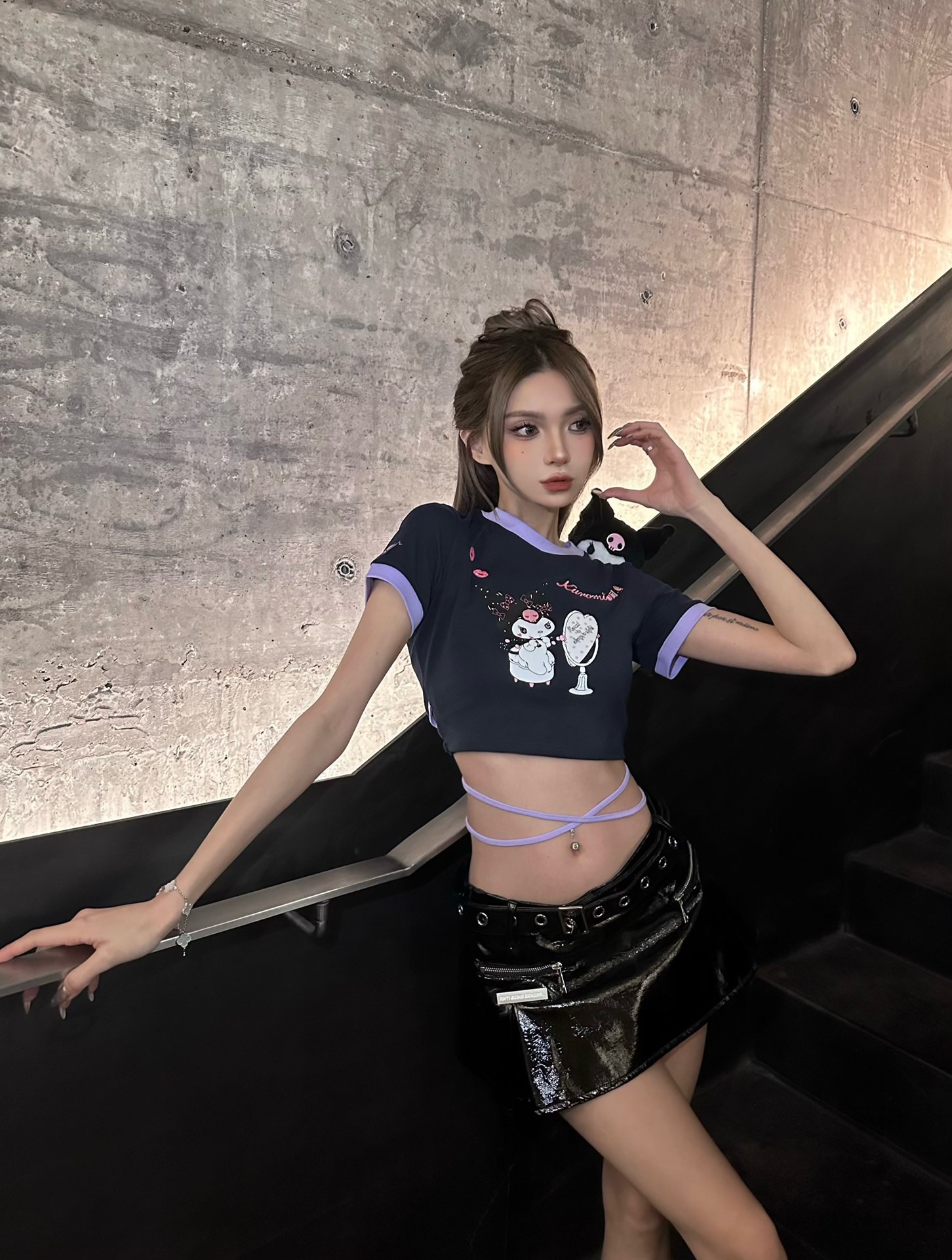 13De Marzo x SANRIO CHARACTERS Kuromi Mirror Lace Top Dark Blue