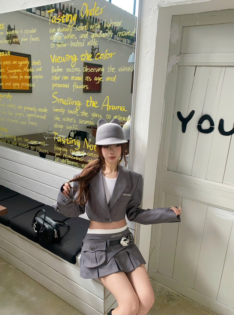 13De Marzo Pocket Blazer Pleated Skirt Grey