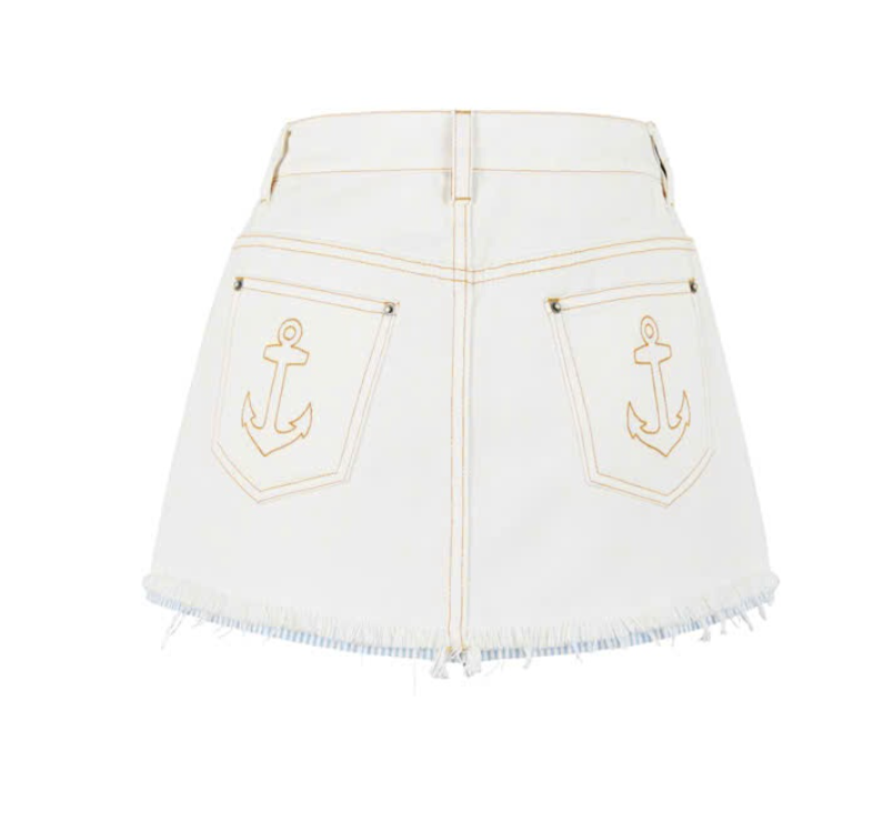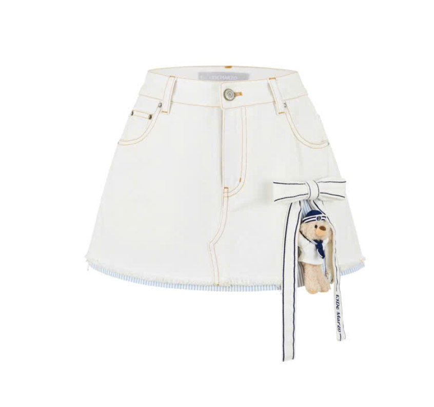 13De Marzo Sailor Bear Denim Skirt White