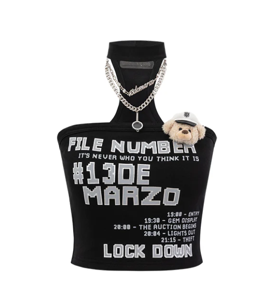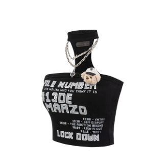 13De Marzo Silver Foil Chain Print Bustier Top Black