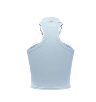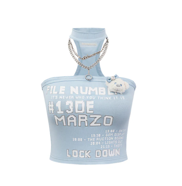 13De Marzo Silver Foil Chain Print Bustier Top Blue