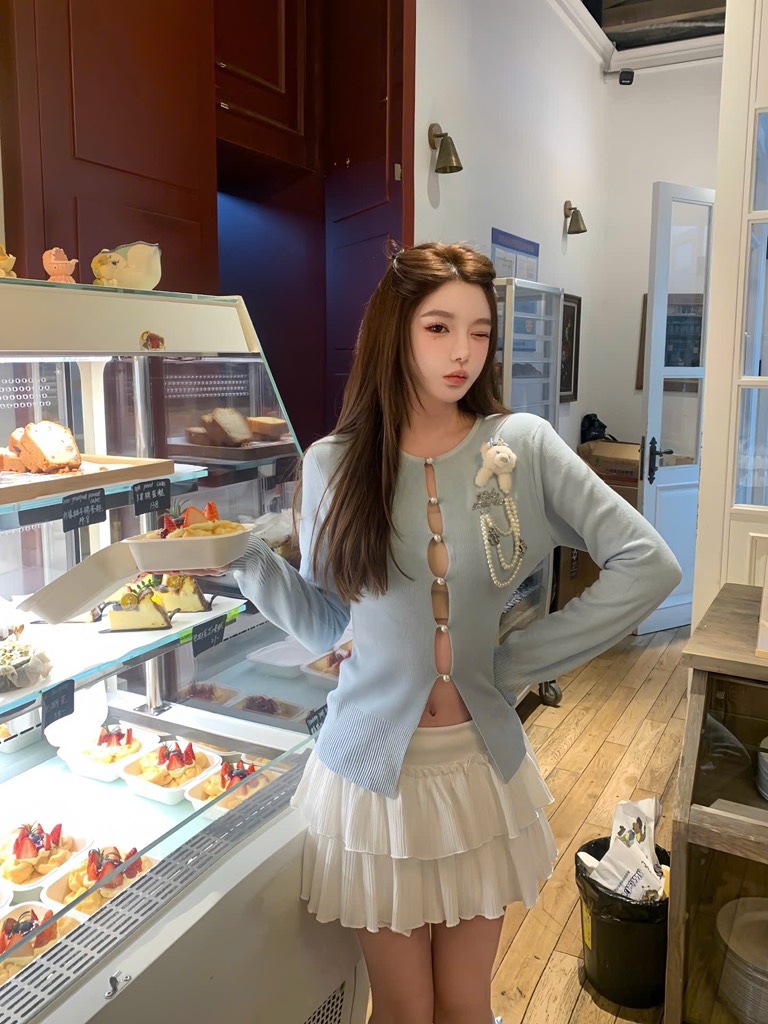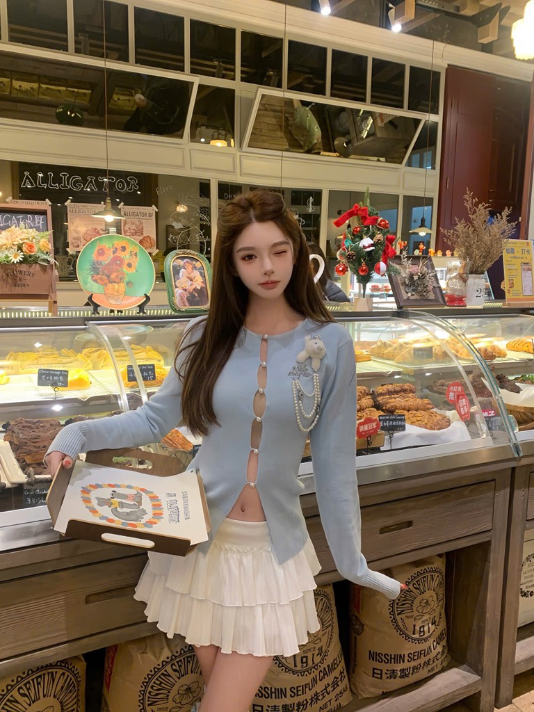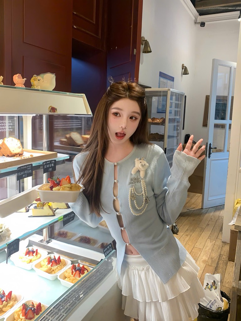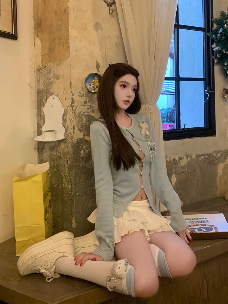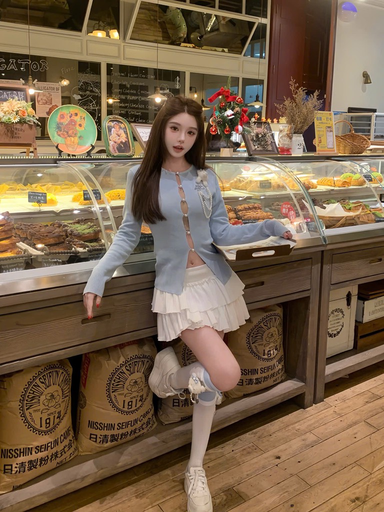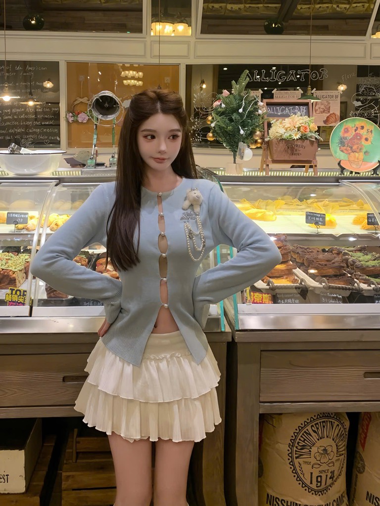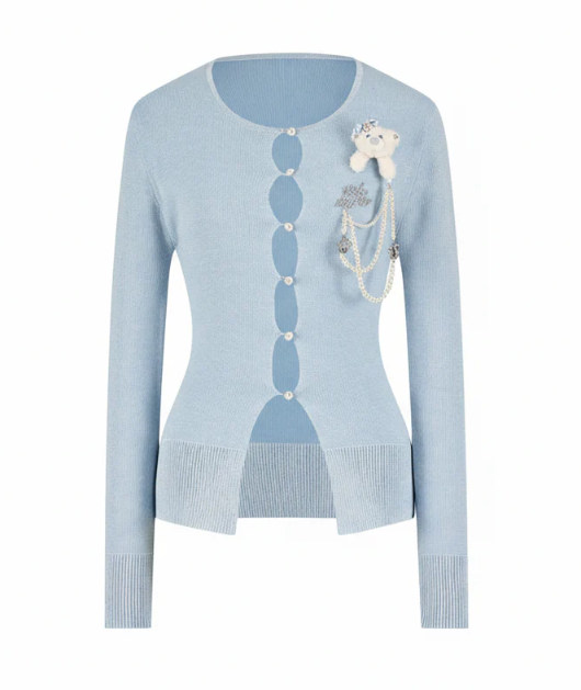 13De Marzo Sparkle Pearl Chain Cardigan Blue