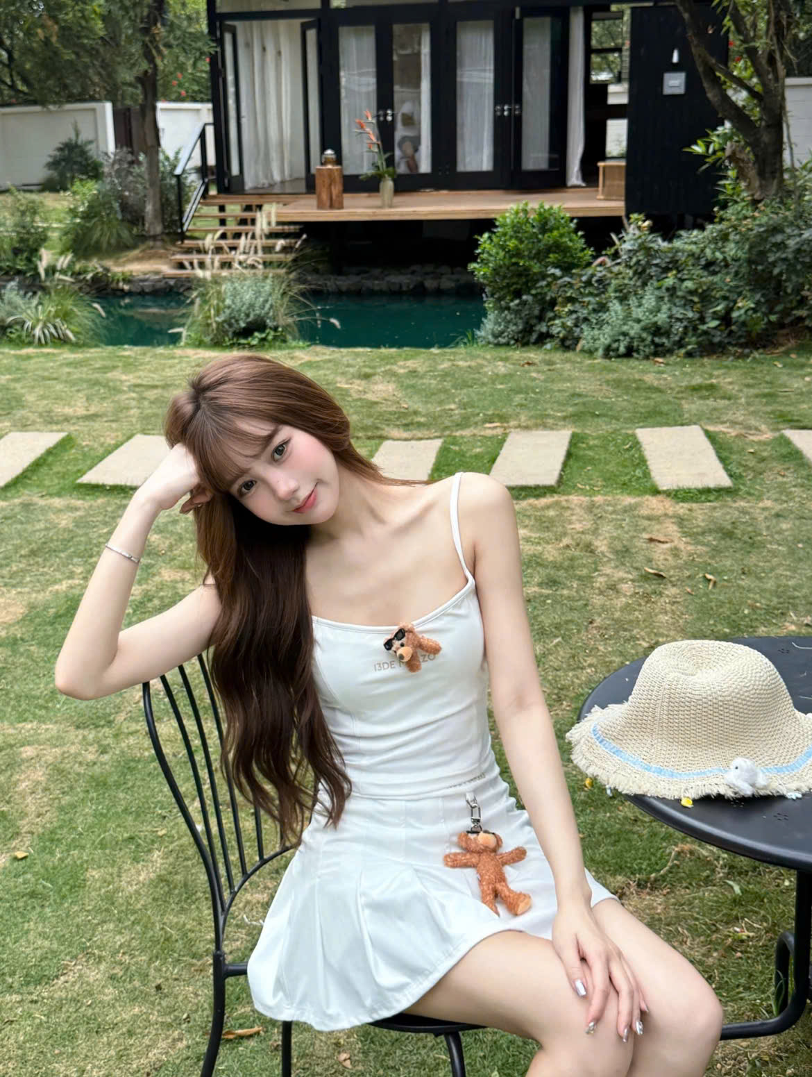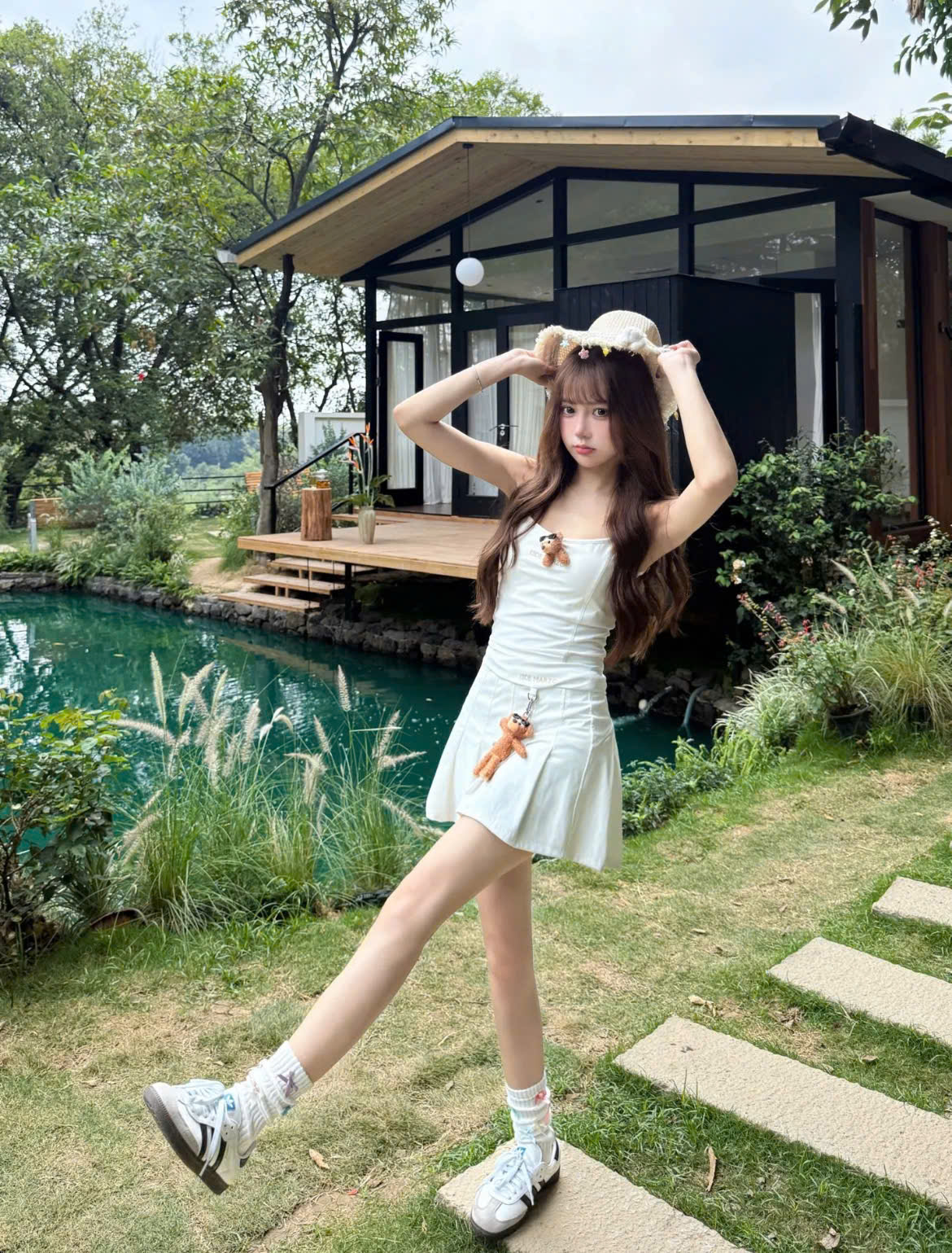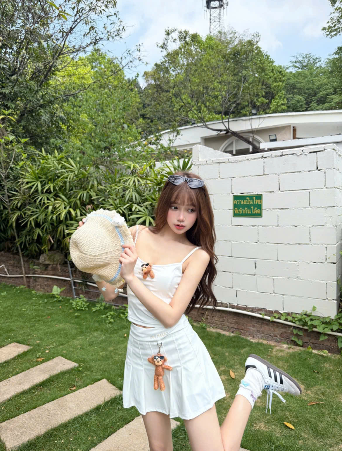 13De Marzo Sunburnt Bear Cooling Pleated Skirt White