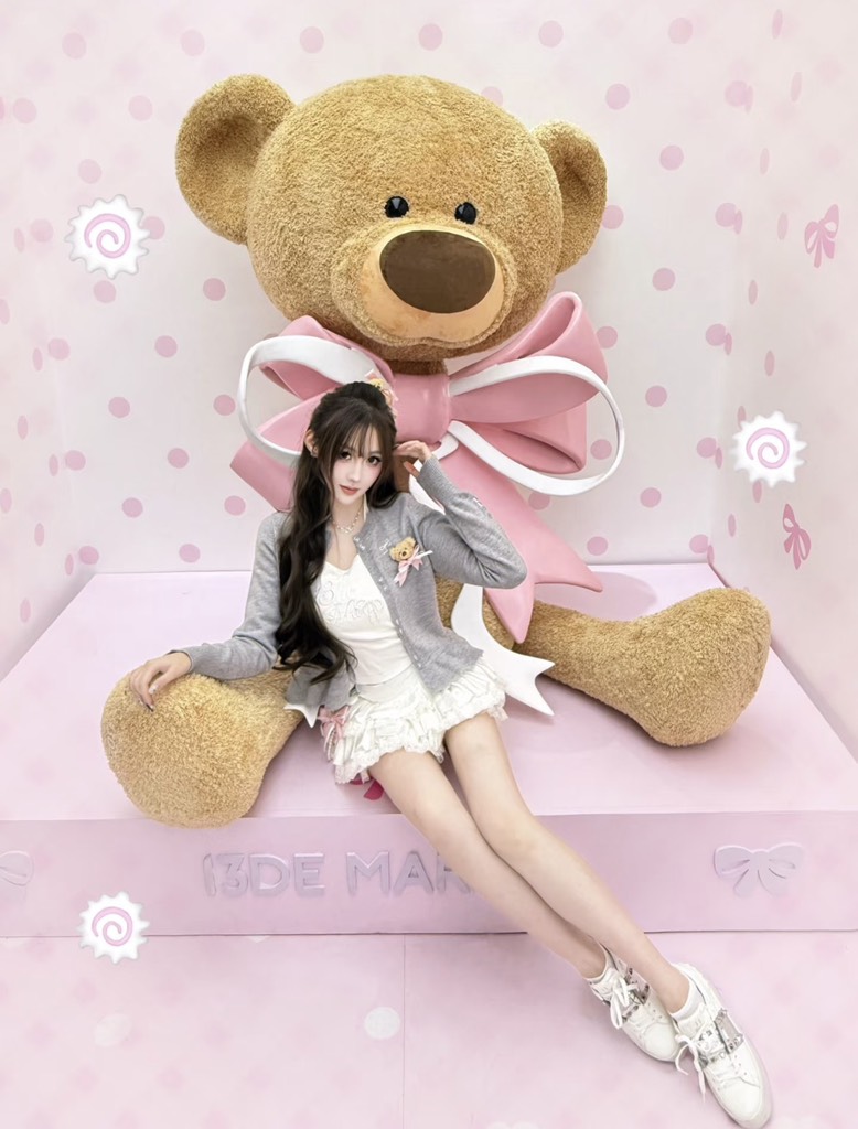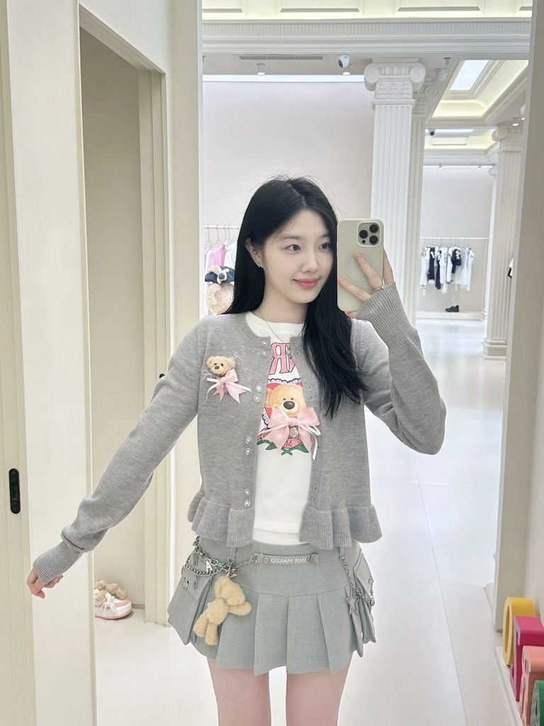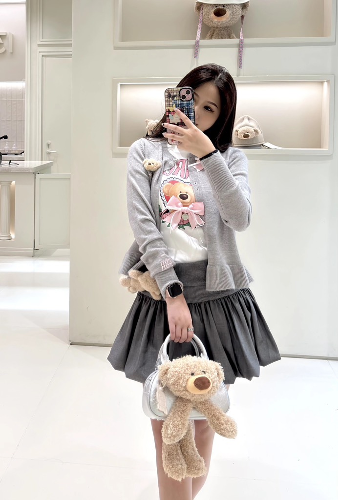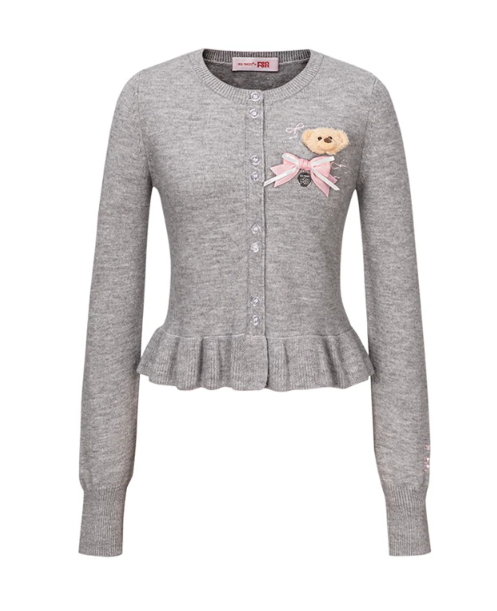 13De Marzo x RONRON Bear Ribbon Cardigan Gray