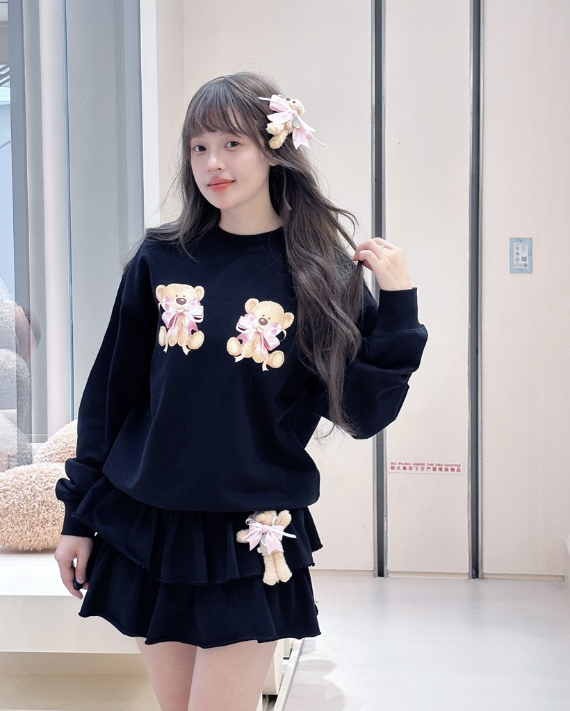 13De Marzo x RONRON Double Ribbon Bear Sweater Black