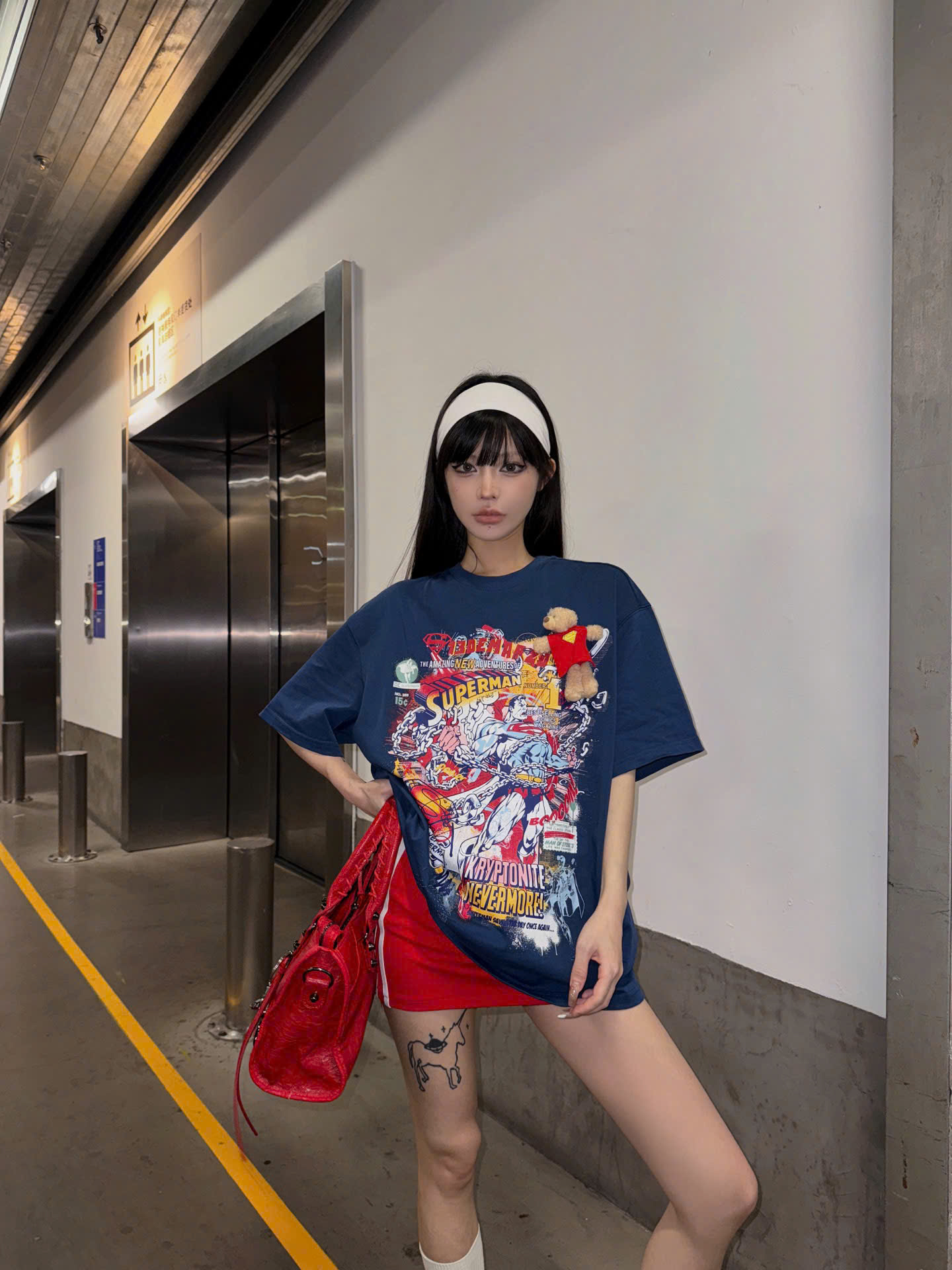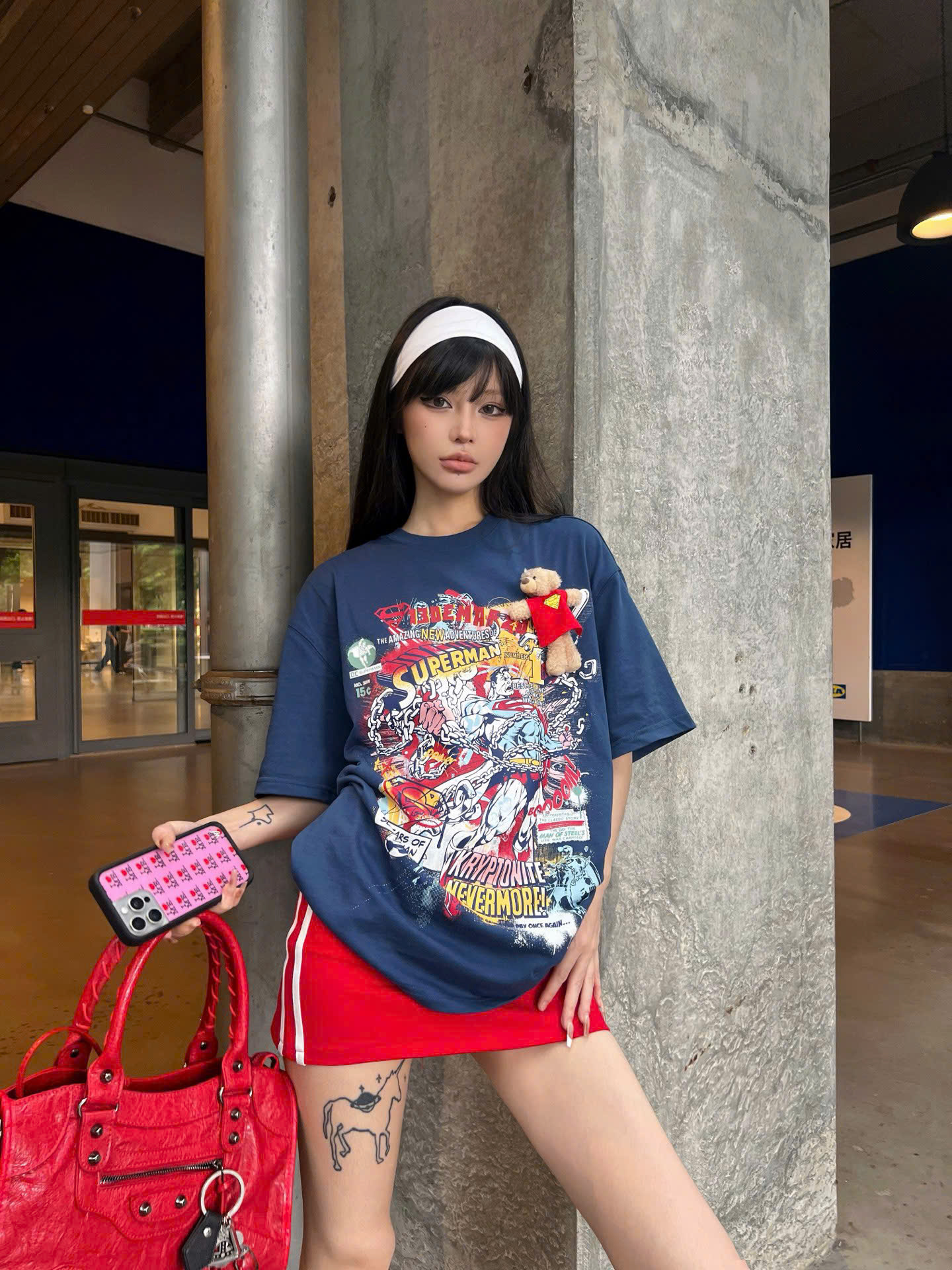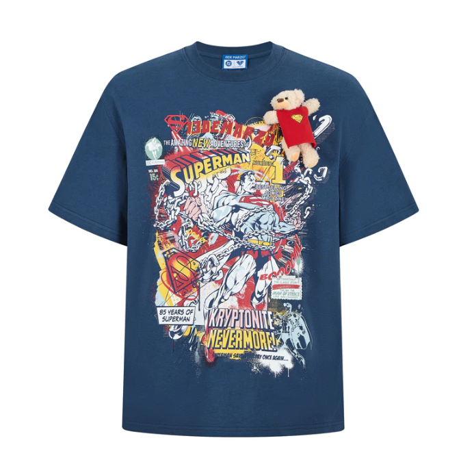 13De Marzo x Superman Bear Illustrated T-shirt Blue