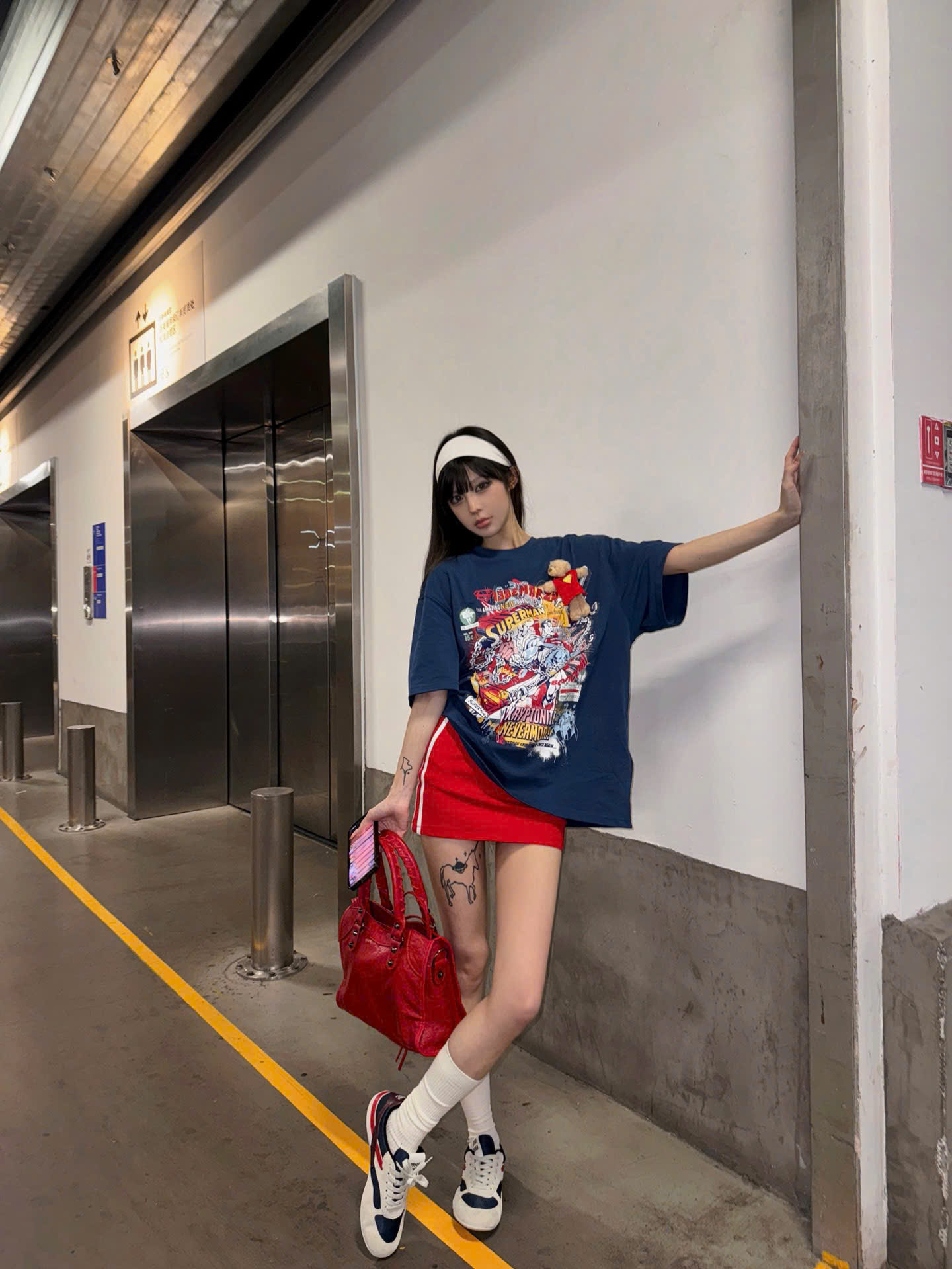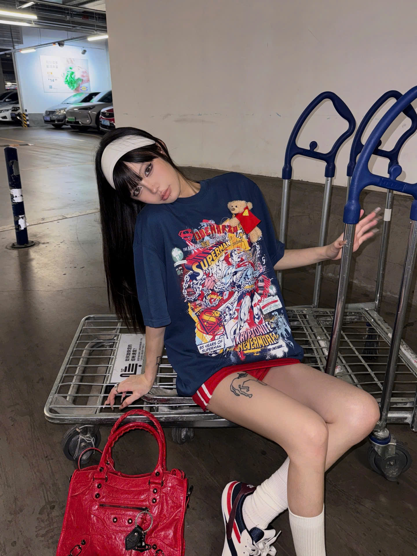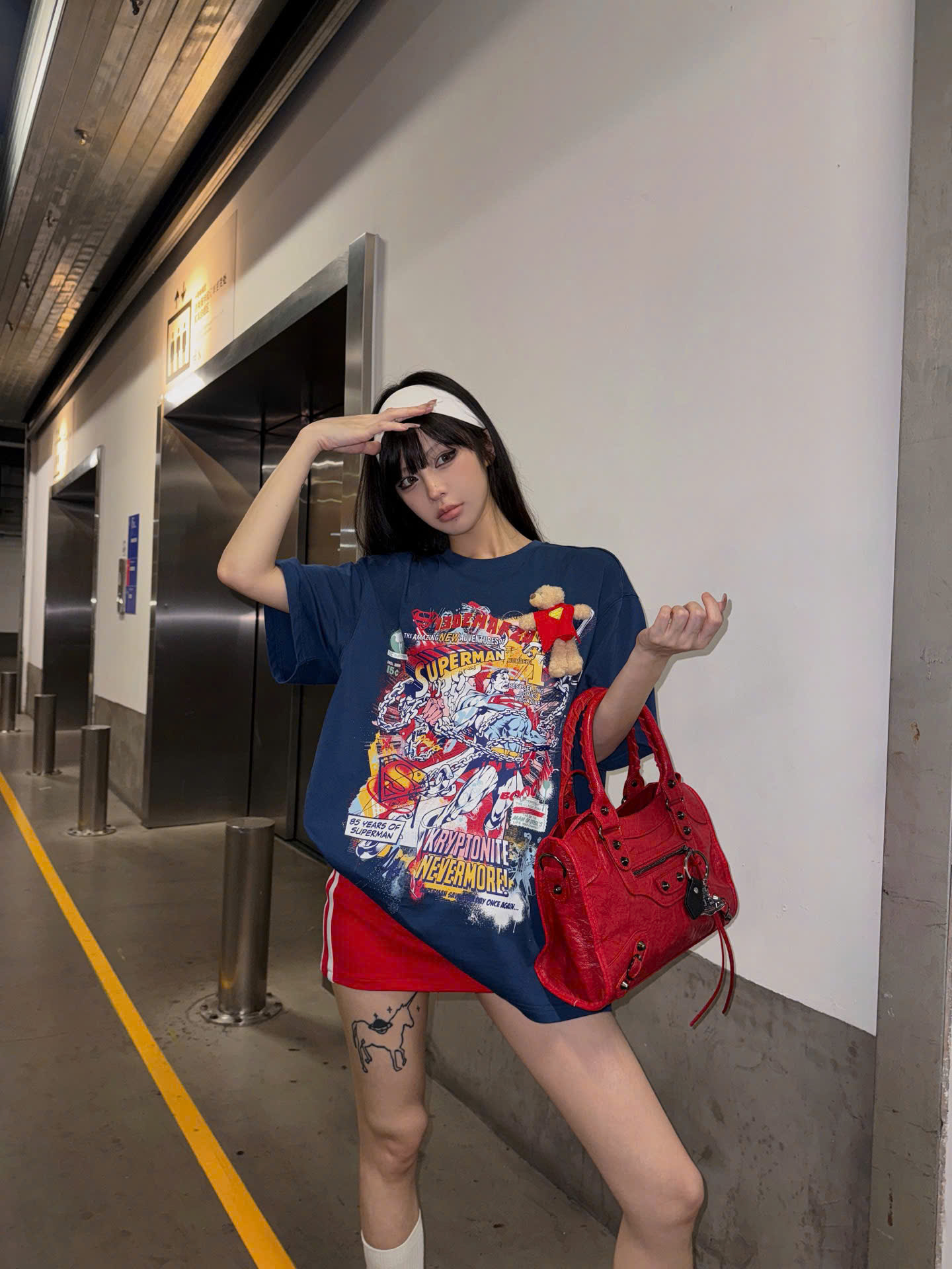 13De Marzo x Superman Bear Illustrated T-shirt Blue