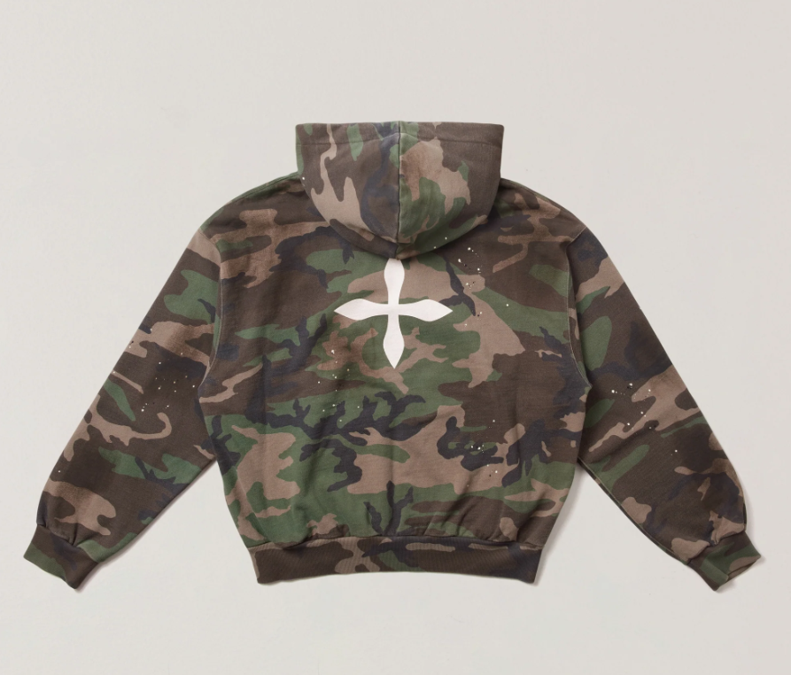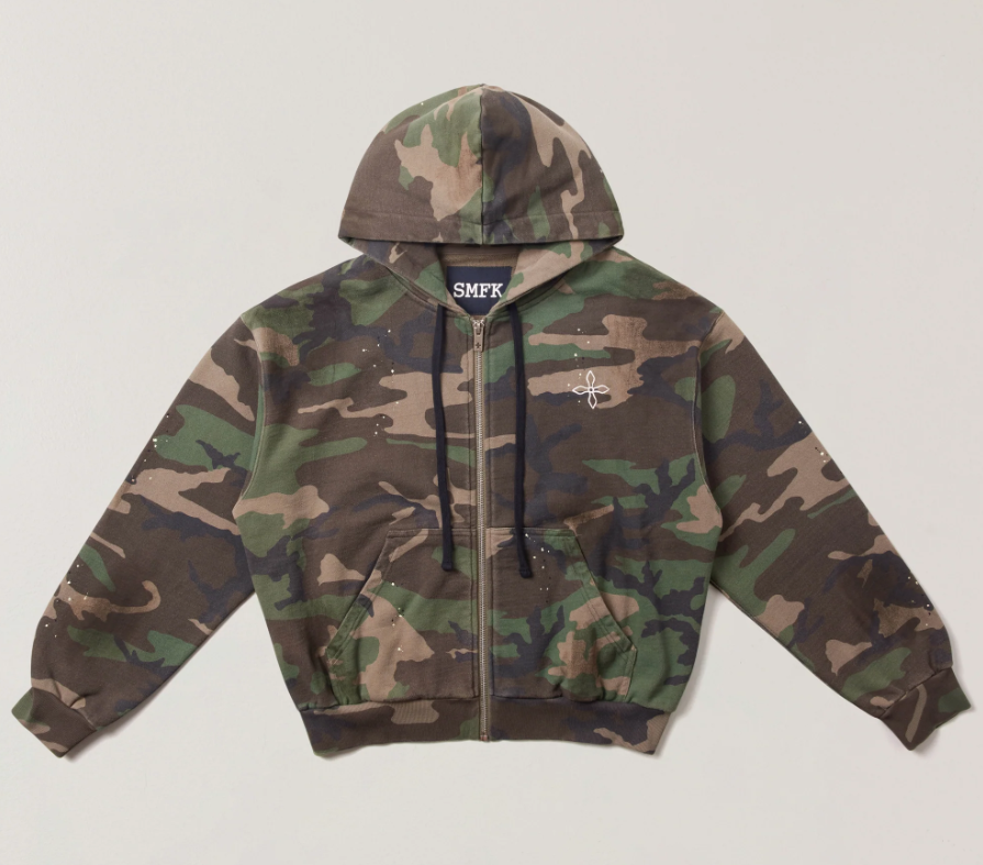 SMFK Compass Mode Camo Loose Zip Hoodie Army Green Camouflage