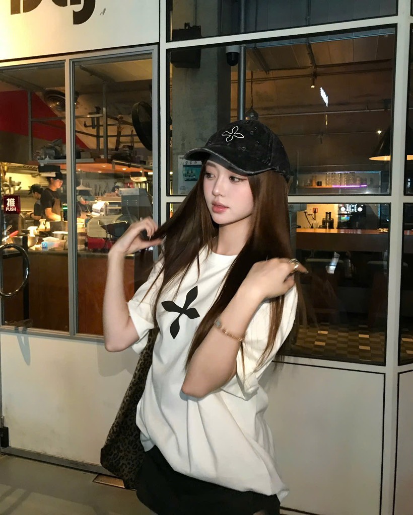 SMFK Vintage Compass Mode Loose Tee Snow Mountain White