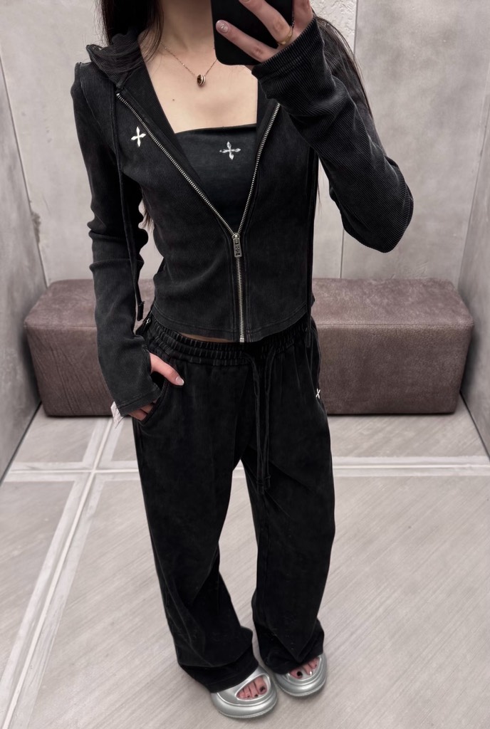 SMFK Vintage-Savage Slim Sports Zip Hoodie/Fade Dye Vanish Black