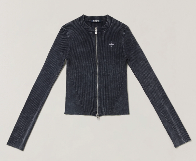 SMFK Vintage-Savage Zip Knit Cardigan/Stone Wash Vanish Black