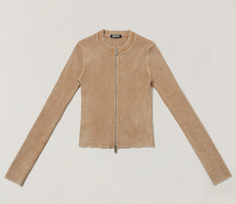 SMFK Vintage-Savage Zip Knit Cardigan/Stone Wash Vanish Sand